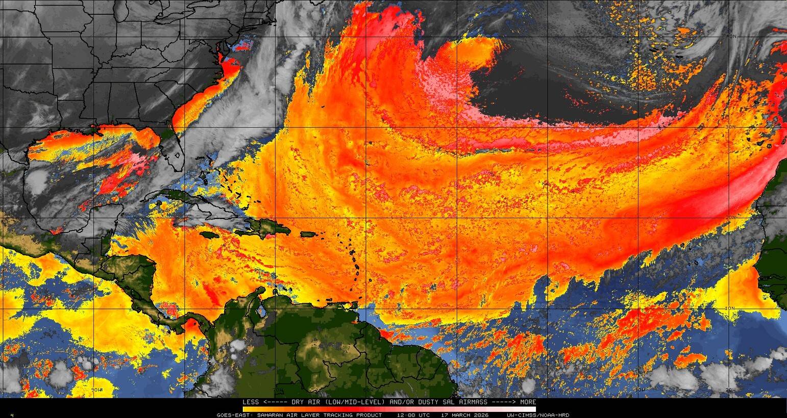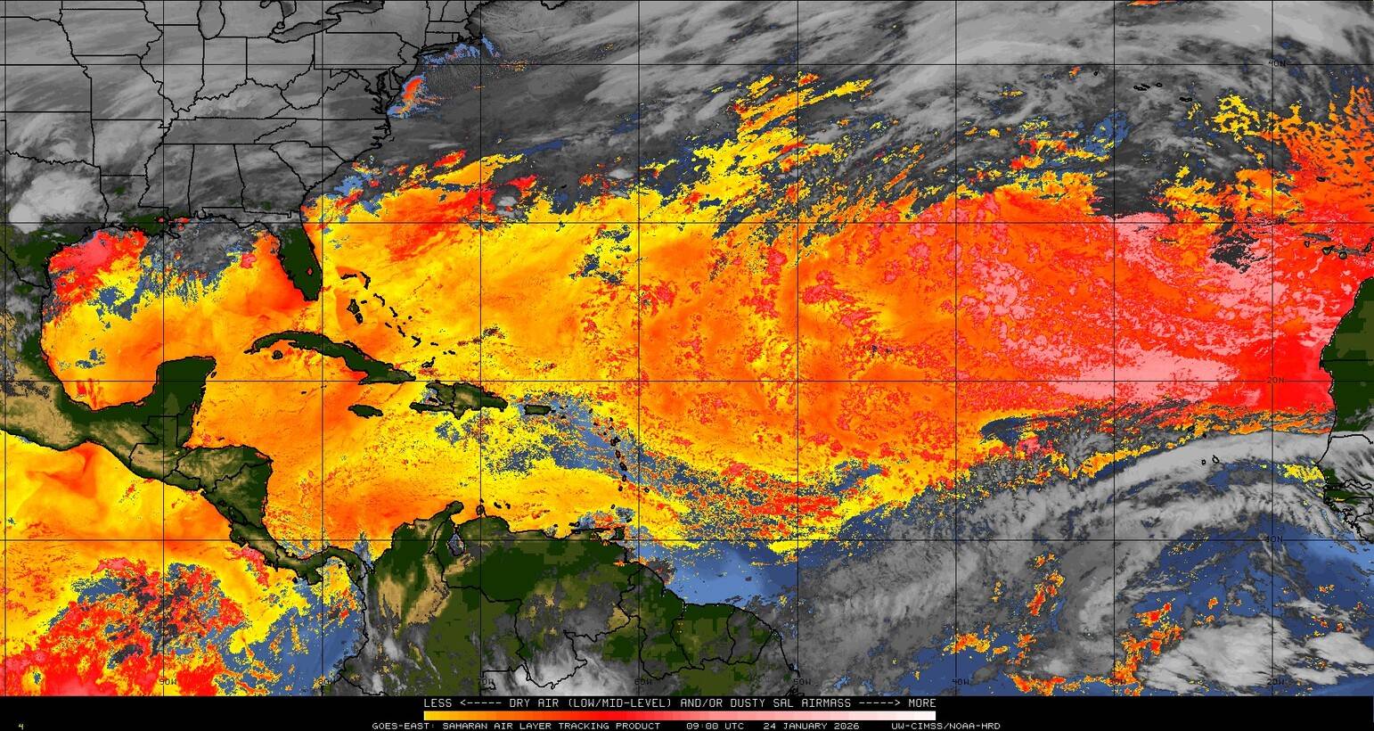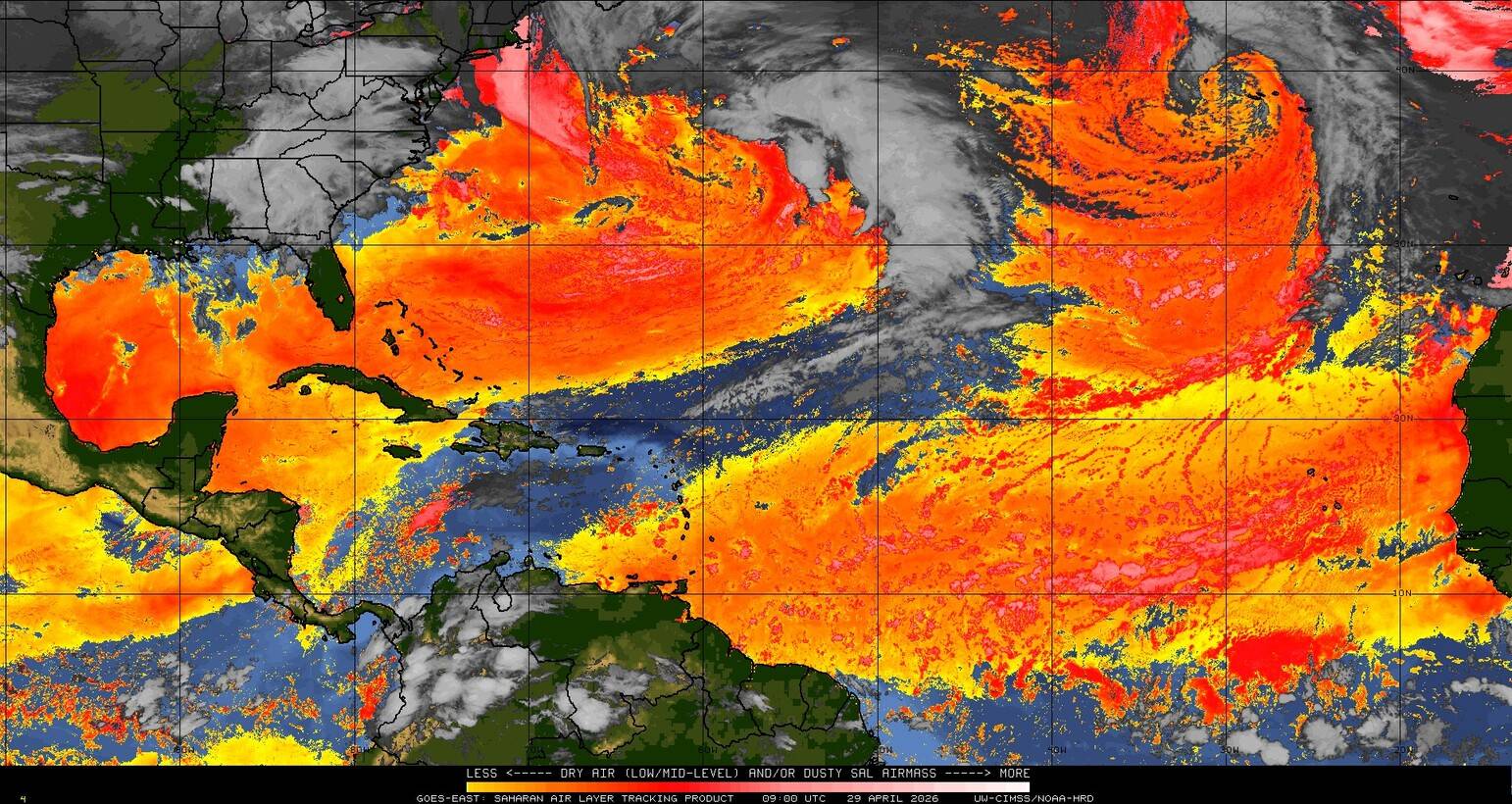 Il n’y a pas de cyclone ni de système surveillé par le NHC en Atlantique. Nous ne sommes pas actuellement en période cyclonique
