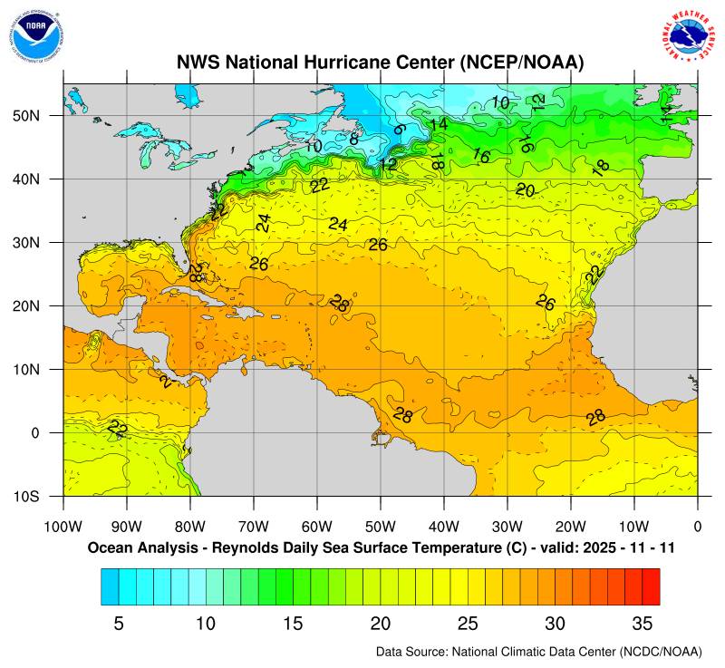 Il n’y a pas de cyclone ni de système surveillé par le NHC en Atlantique.