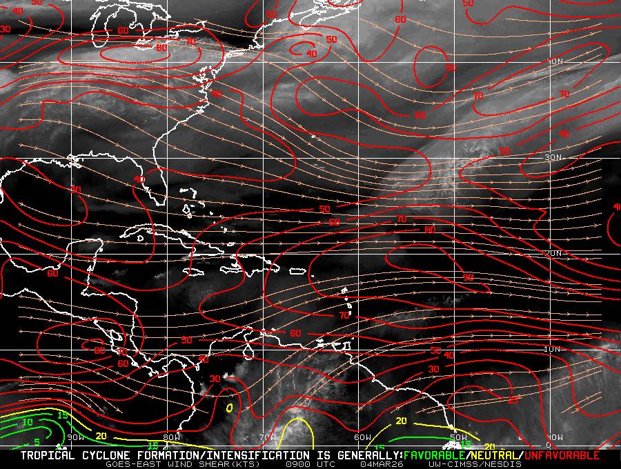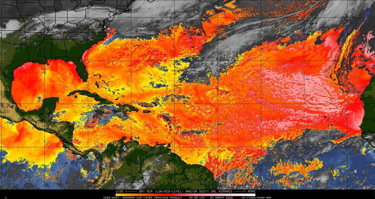 Il n’y a pas de cyclone ni de système surveillé par le NHC en Atlantique. Nous ne sommes pas actuellement en période cyclonique