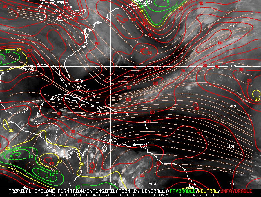 Il n’y a pas de cyclone ni de système surveillé par le NHC en Atlantique.