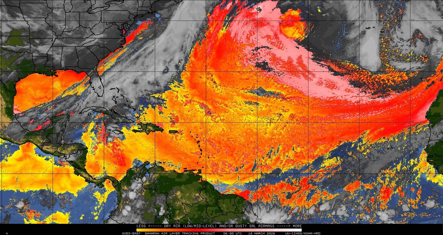 Il n’y a pas de cyclone ni de système surveillé par le NHC en Atlantique. Nous ne sommes pas actuellement en période cyclonique
