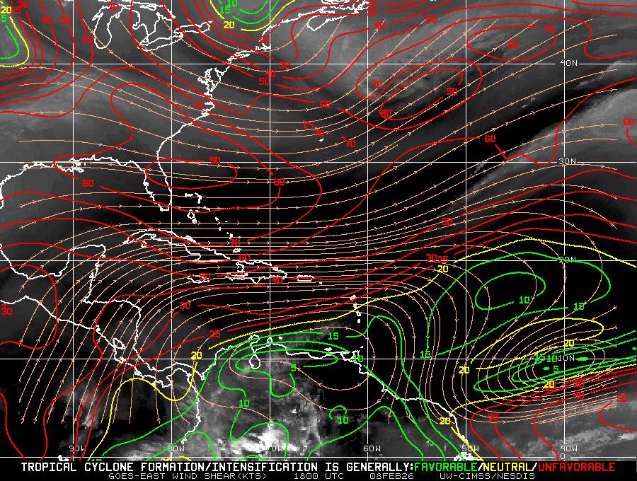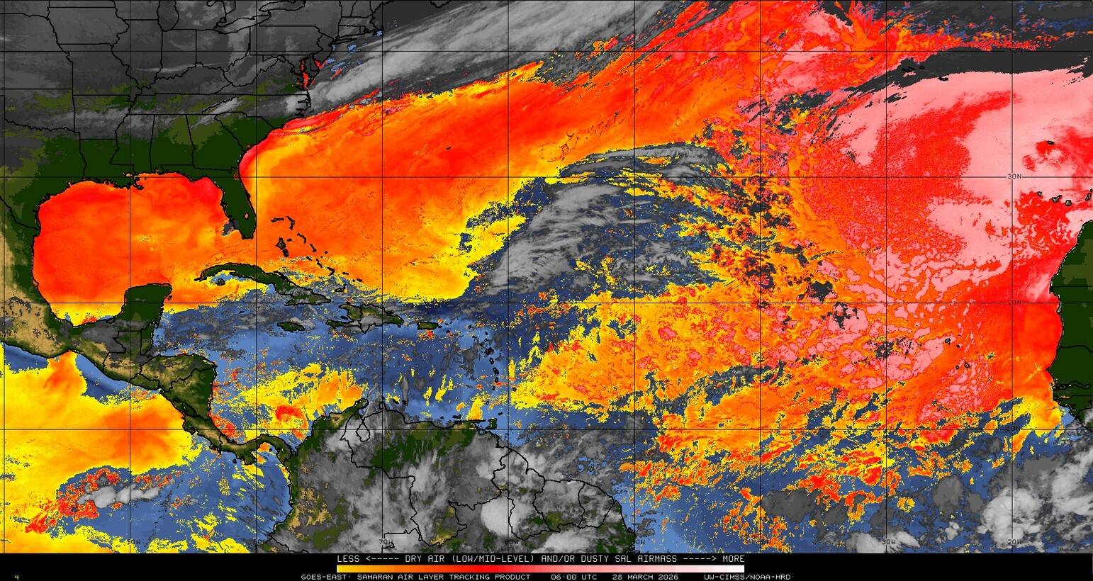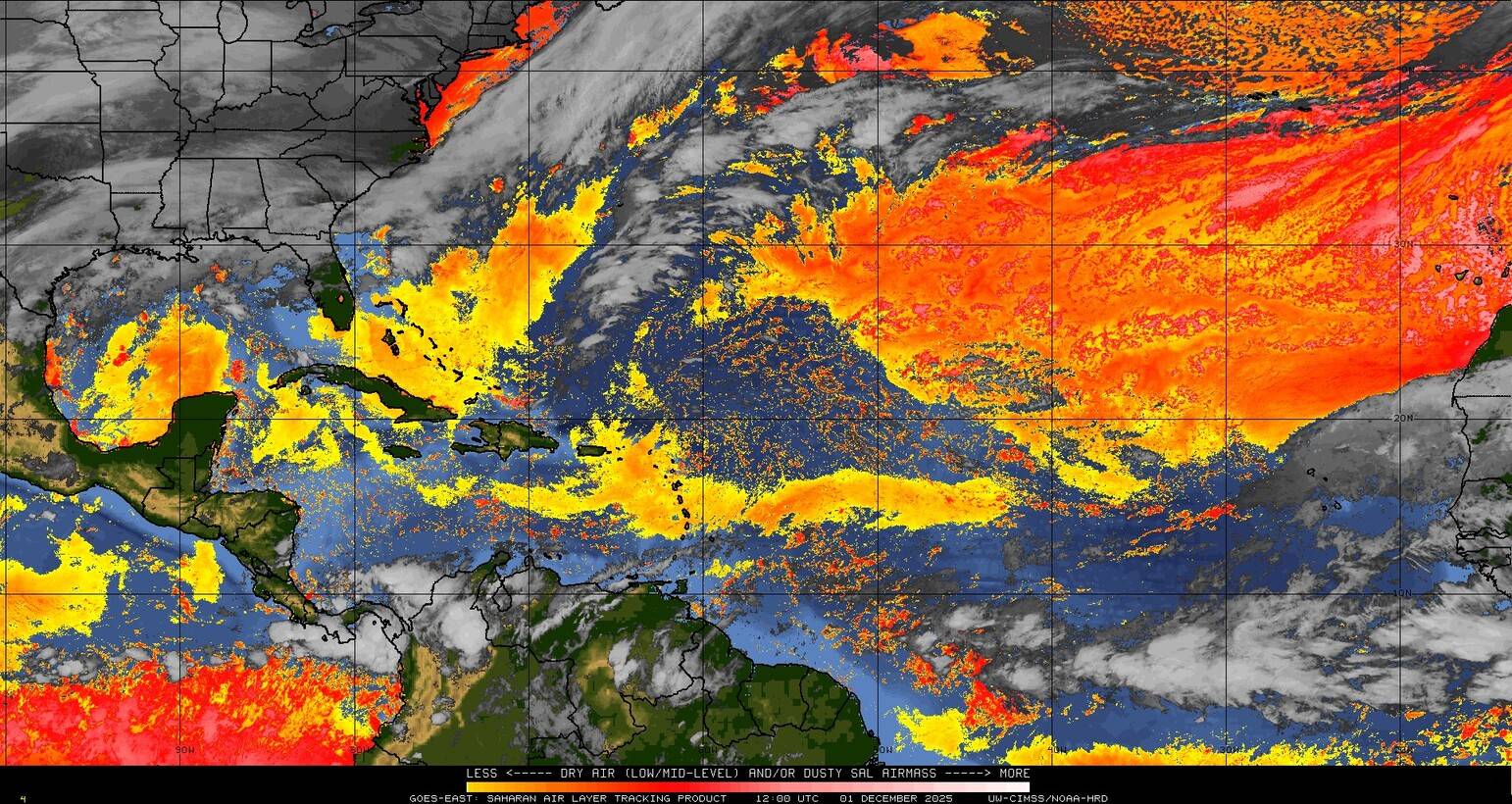 Il n’y a pas de cyclone ni de système surveillé par le NHC en Atlantique. Nous ne sommes pas actuellement en période cyclonique