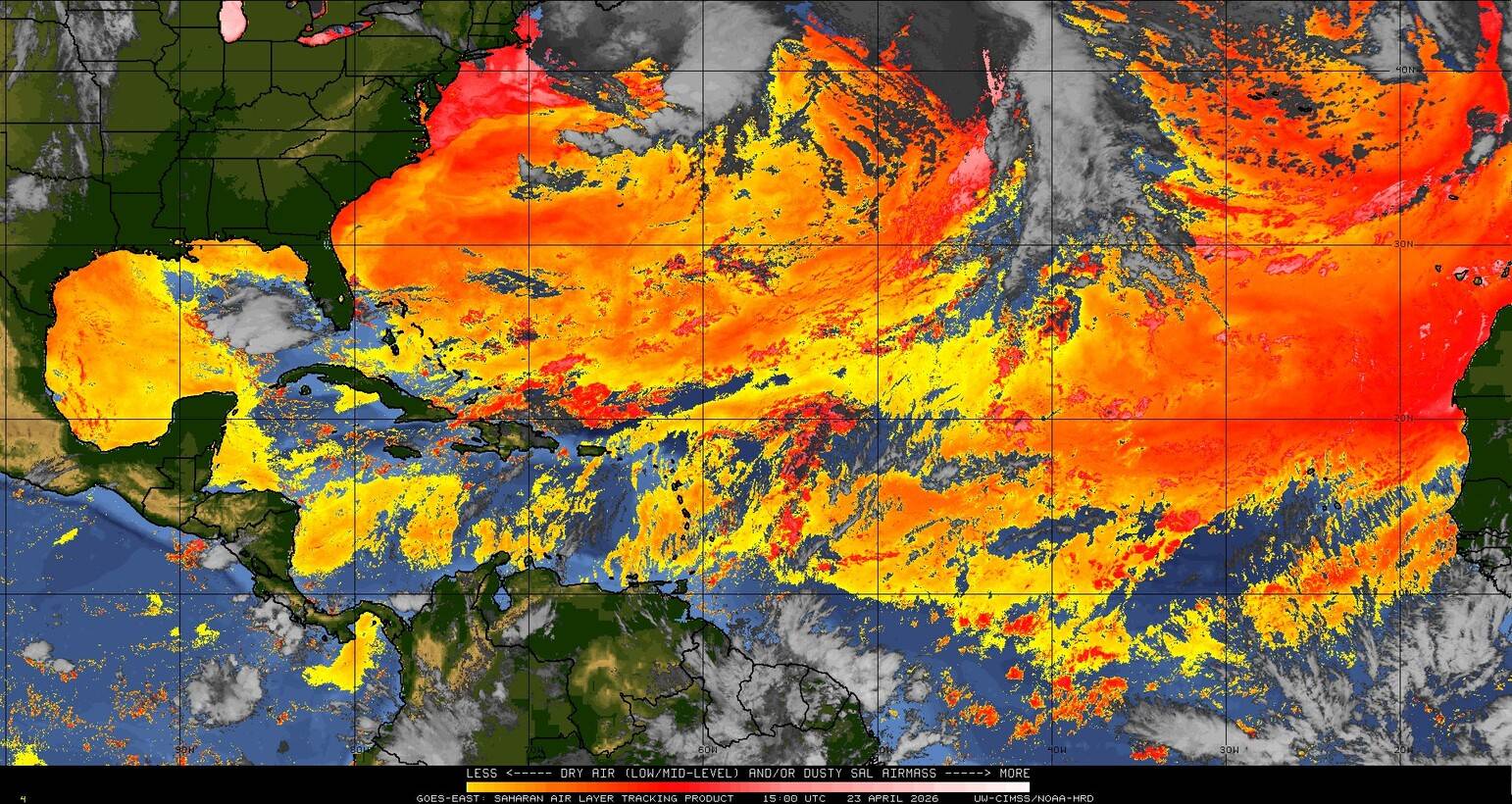 Il n’y a pas de cyclone ni de système surveillé par le NHC en Atlantique. Nous ne sommes pas actuellement en période cyclonique