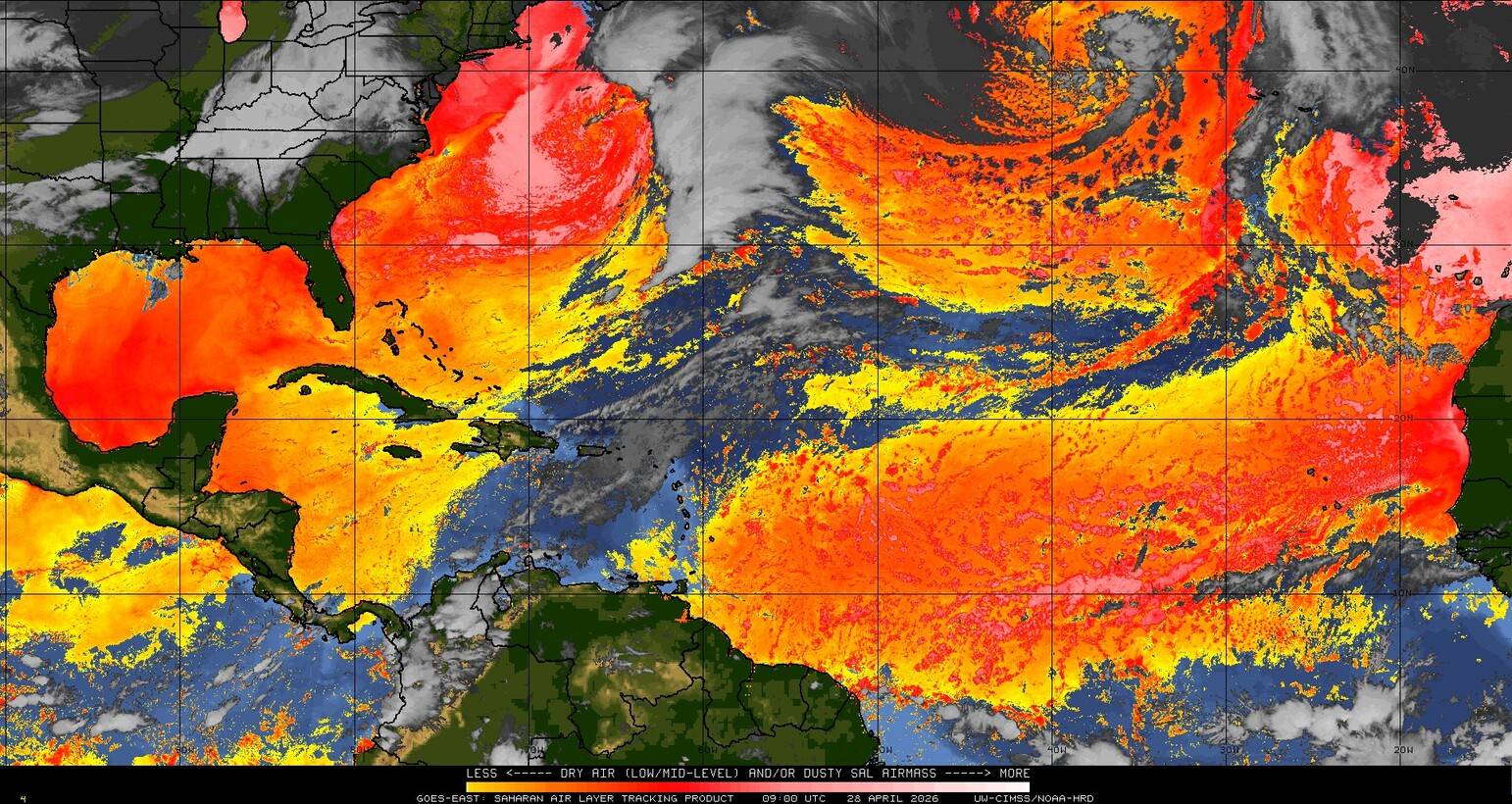 Il n’y a pas de cyclone ni de système surveillé par le NHC en Atlantique. Nous ne sommes pas actuellement en période cyclonique