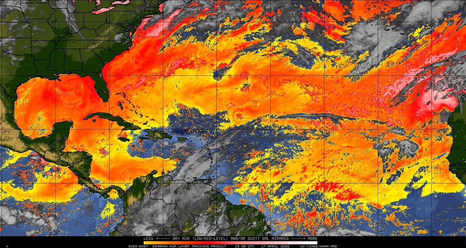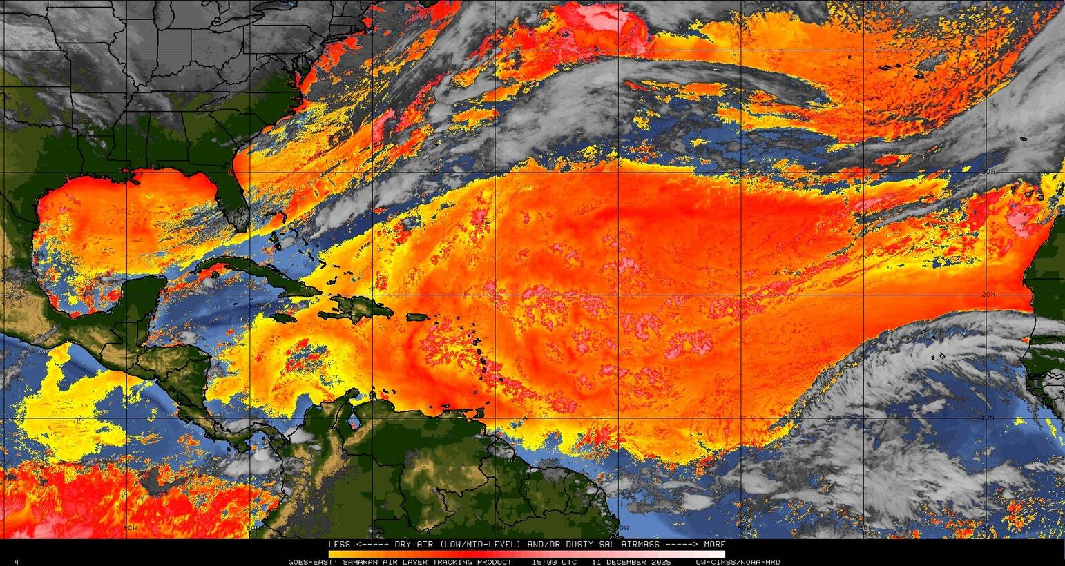 Il n’y a pas de cyclone ni de système surveillé par le NHC en Atlantique. Nous ne sommes pas actuellement en période cyclonique
