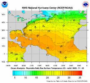 Il n’y a pas de cyclone ni de système surveillé par le NHC en Atlantique.