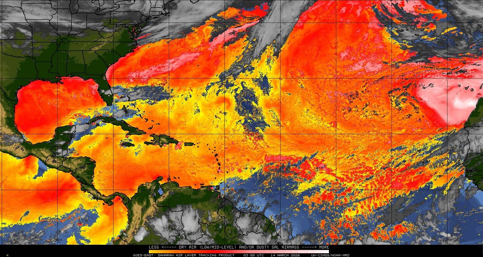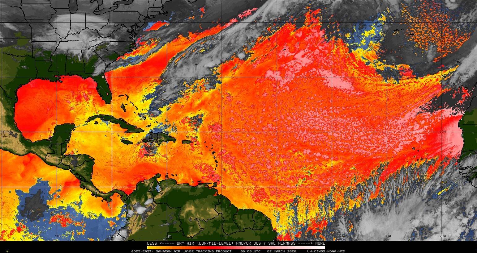 Il n’y a pas de cyclone ni de système surveillé par le NHC en Atlantique. Nous ne sommes pas actuellement en période cyclonique