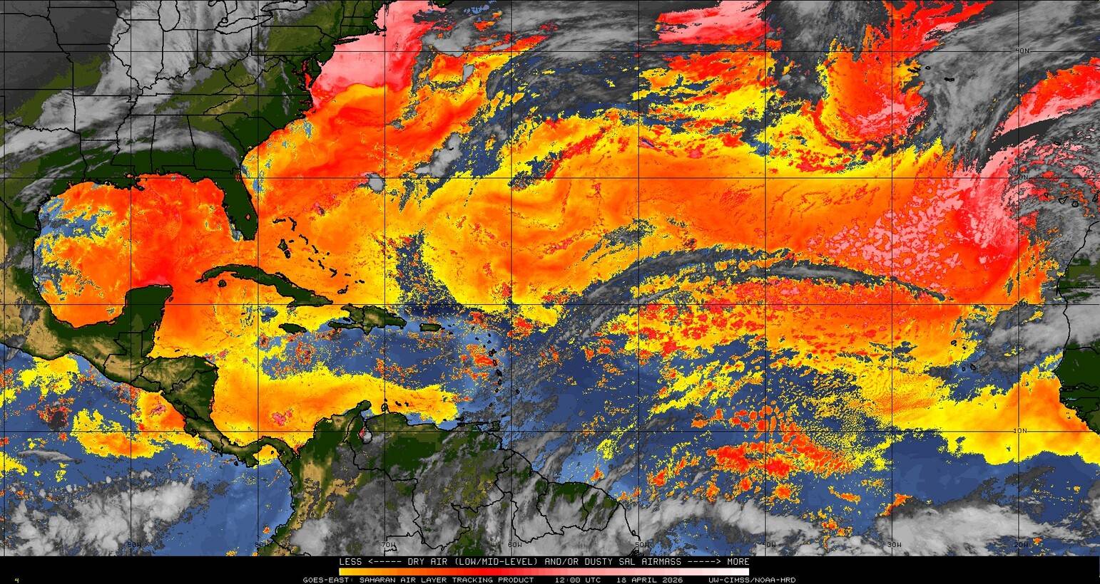 Il n’y a pas de cyclone ni de système surveillé par le NHC en Atlantique. Nous ne sommes pas actuellement en période cyclonique