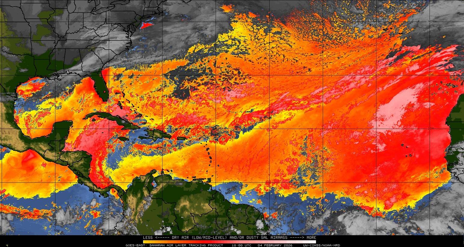Il n’y a pas de cyclone ni de système surveillé par le NHC en Atlantique. Nous ne sommes pas actuellement en période cyclonique