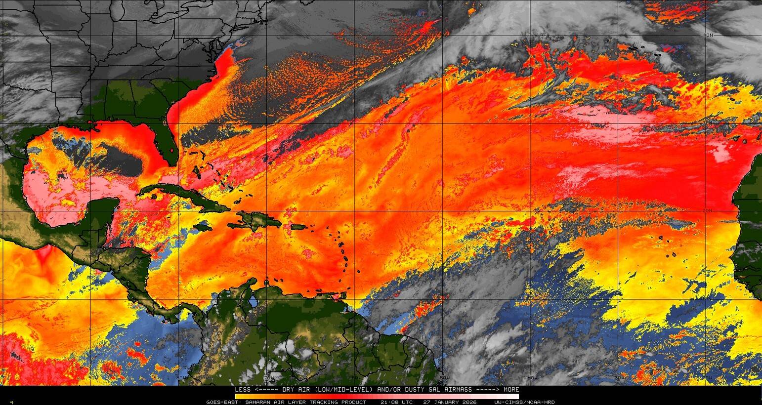 Il n’y a pas de cyclone ni de système surveillé par le NHC en Atlantique. Nous ne sommes pas actuellement en période cyclonique