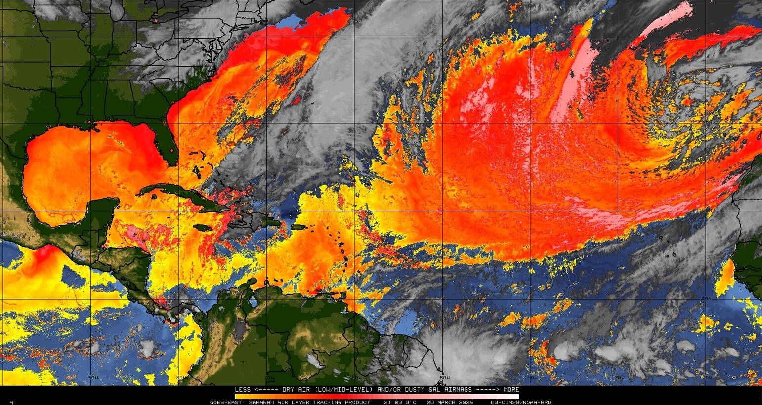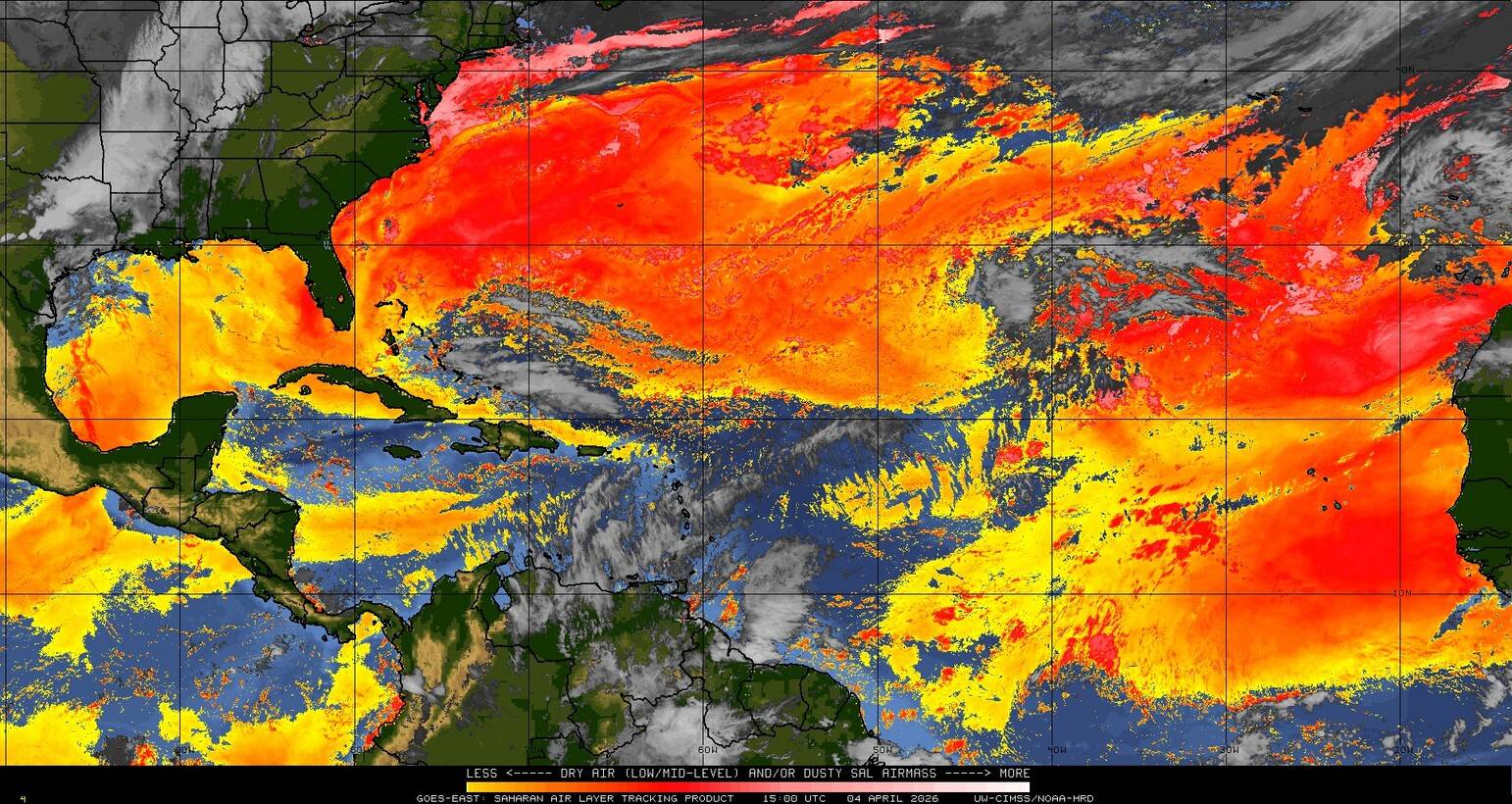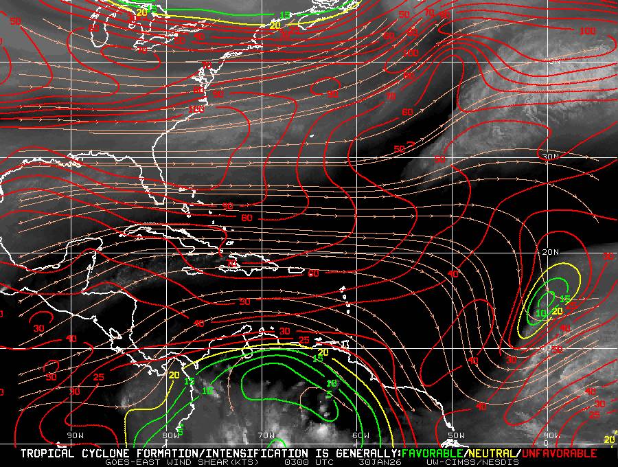 Il n’y a pas de cyclone ni de système surveillé par le NHC en Atlantique. Nous ne sommes pas actuellement en période cyclonique