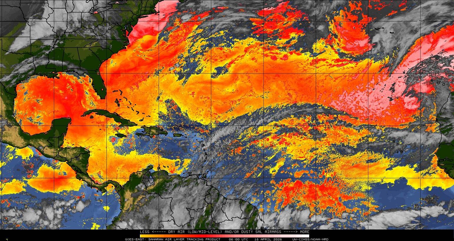 Il n’y a pas de cyclone ni de système surveillé par le NHC en Atlantique. Nous ne sommes pas actuellement en période cyclonique