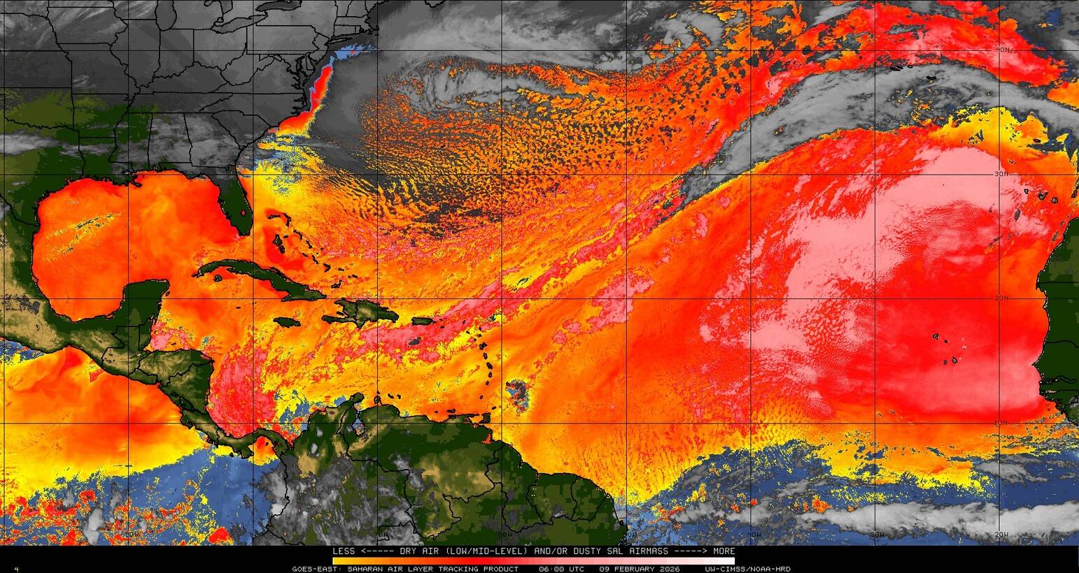 Il n’y a pas de cyclone ni de système surveillé par le NHC en Atlantique. Nous ne sommes pas actuellement en période cyclonique