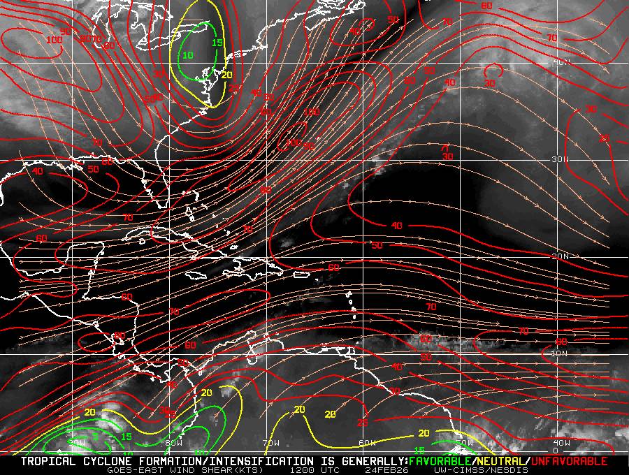 Il n’y a pas de cyclone ni de système surveillé par le NHC en Atlantique. Nous ne sommes pas actuellement en période cyclonique