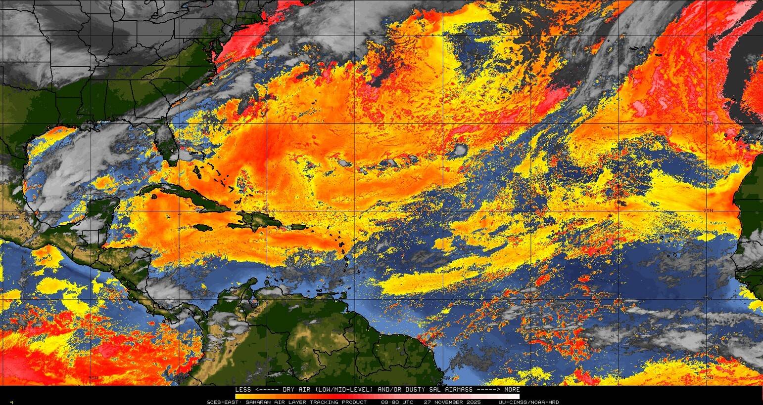 Il n’y a pas de cyclone ni de système surveillé par le NHC en Atlantique.