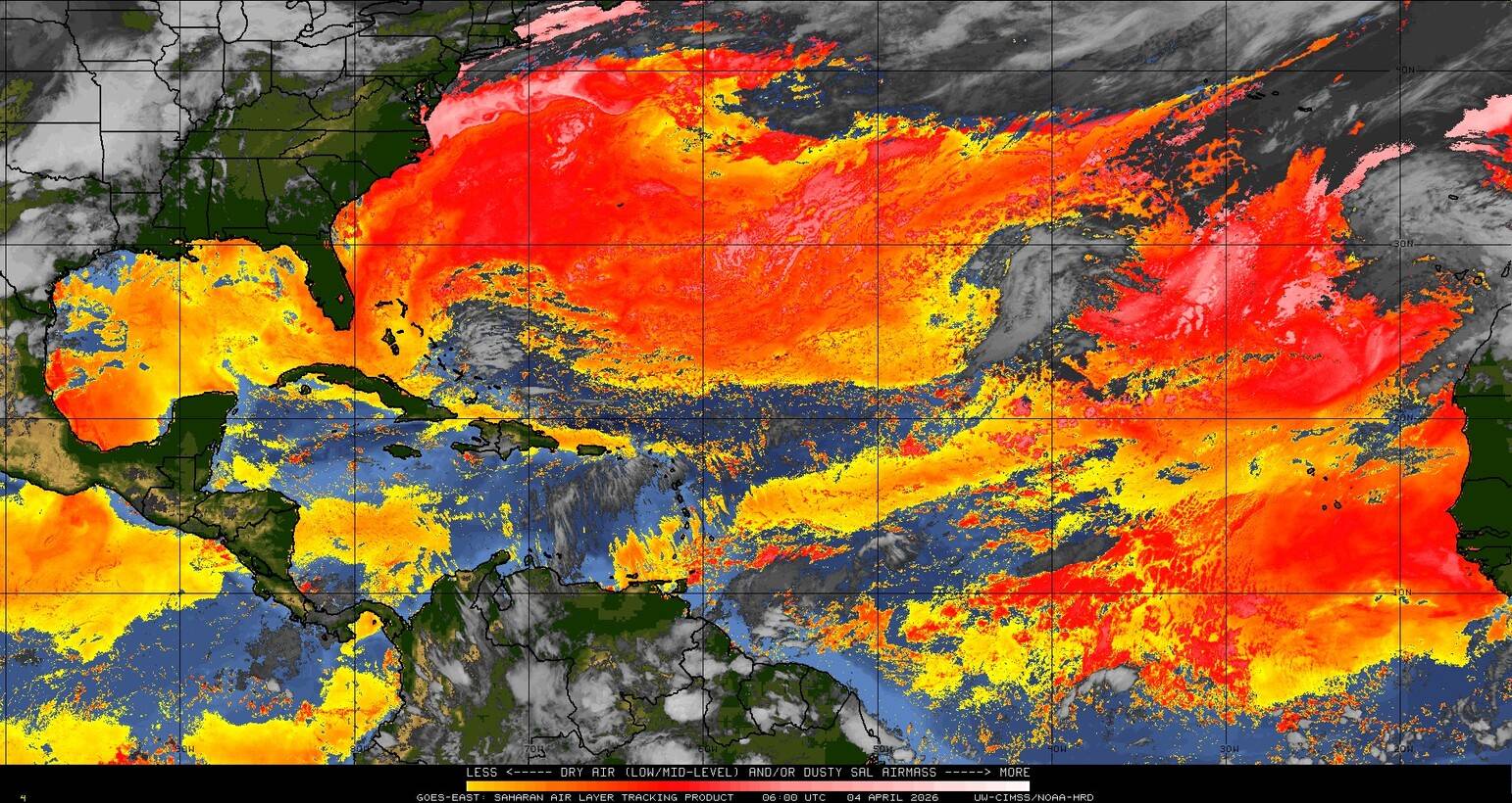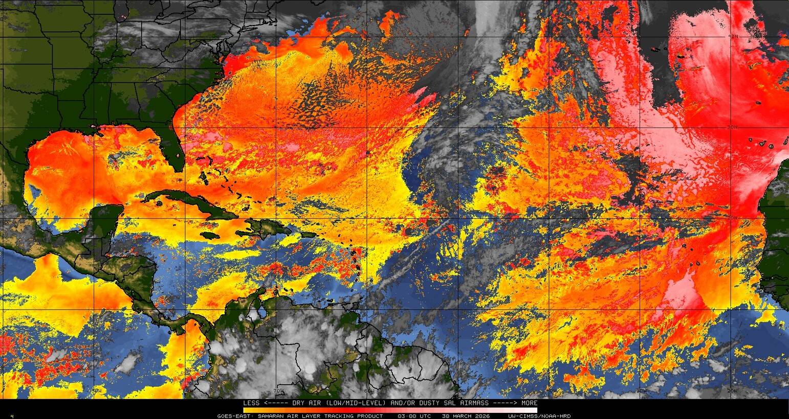 Il n’y a pas de cyclone ni de système surveillé par le NHC en Atlantique. Nous ne sommes pas actuellement en période cyclonique