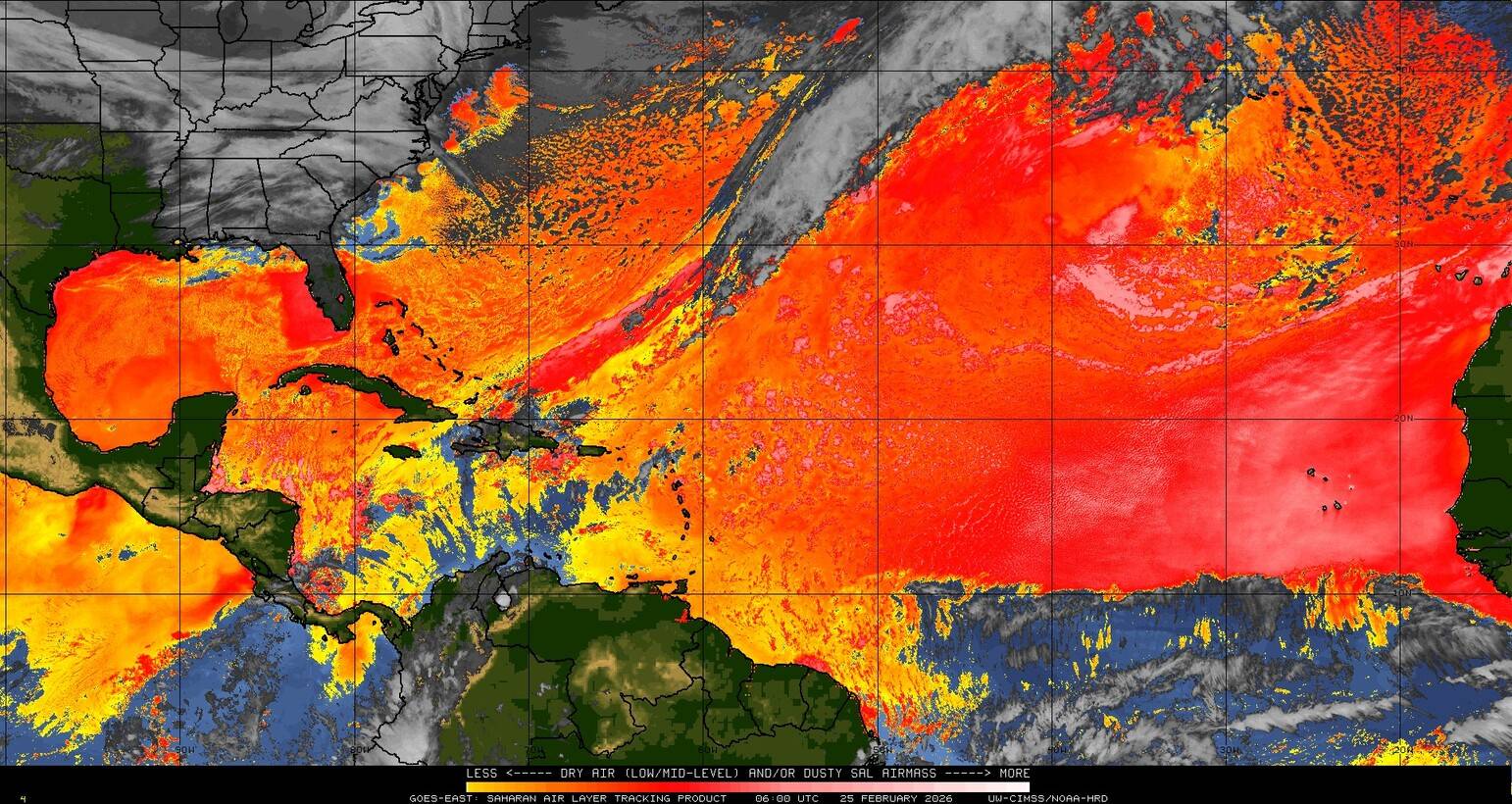 Il n’y a pas de cyclone ni de système surveillé par le NHC en Atlantique. Nous ne sommes pas actuellement en période cyclonique