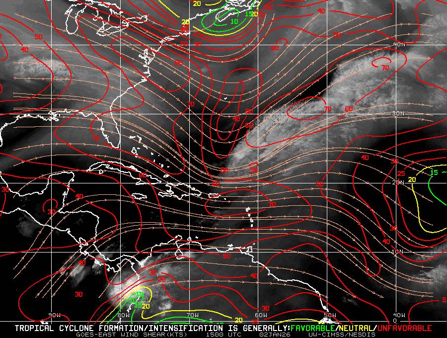 Il n’y a pas de cyclone ni de système surveillé par le NHC en Atlantique. Nous ne sommes pas actuellement en période cyclonique