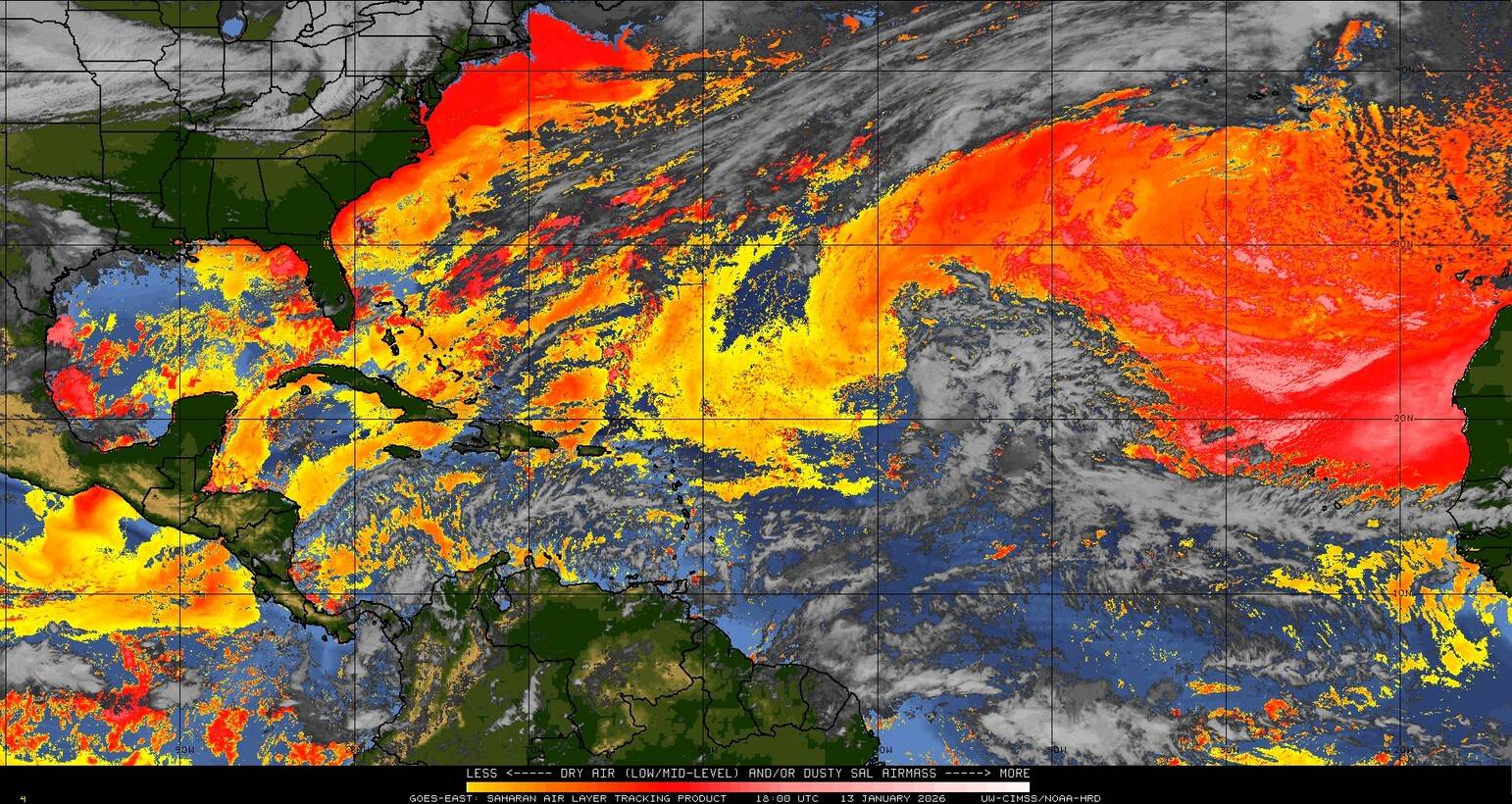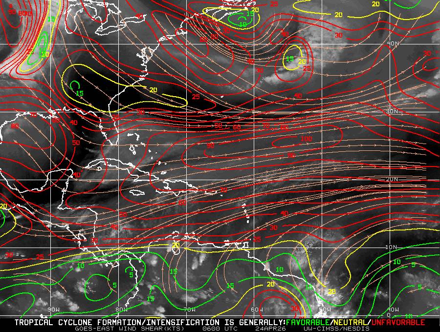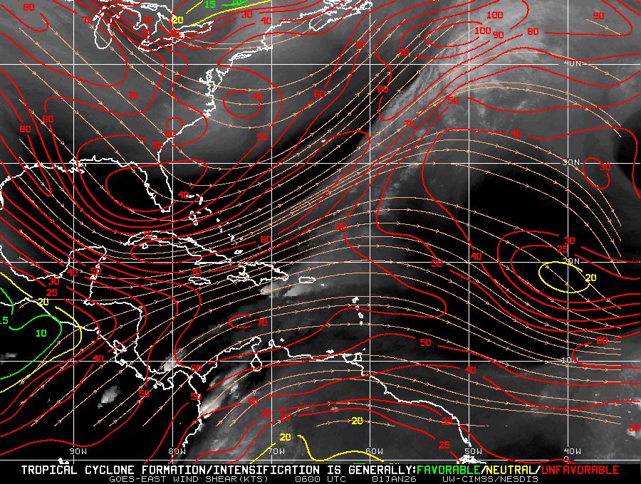 Il n’y a pas de cyclone ni de système surveillé par le NHC en Atlantique. Nous ne sommes pas actuellement en période cyclonique