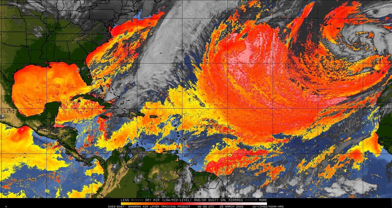 Il n’y a pas de cyclone ni de système surveillé par le NHC en Atlantique. Nous ne sommes pas actuellement en période cyclonique