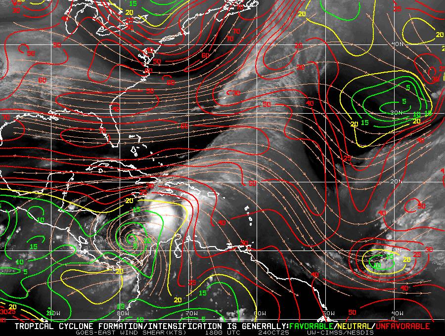 La Tempête MELISSA situé(e) sur 16 N par -75.6 W (à 256 km au SSE de Jamaica). L’intensité est de 40 kts et la pression de 1001 hPa.