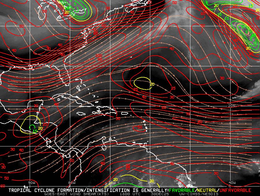 Il n’y a pas de cyclone ni de système surveillé par le NHC en Atlantique. Nous ne sommes pas actuellement en période cyclonique