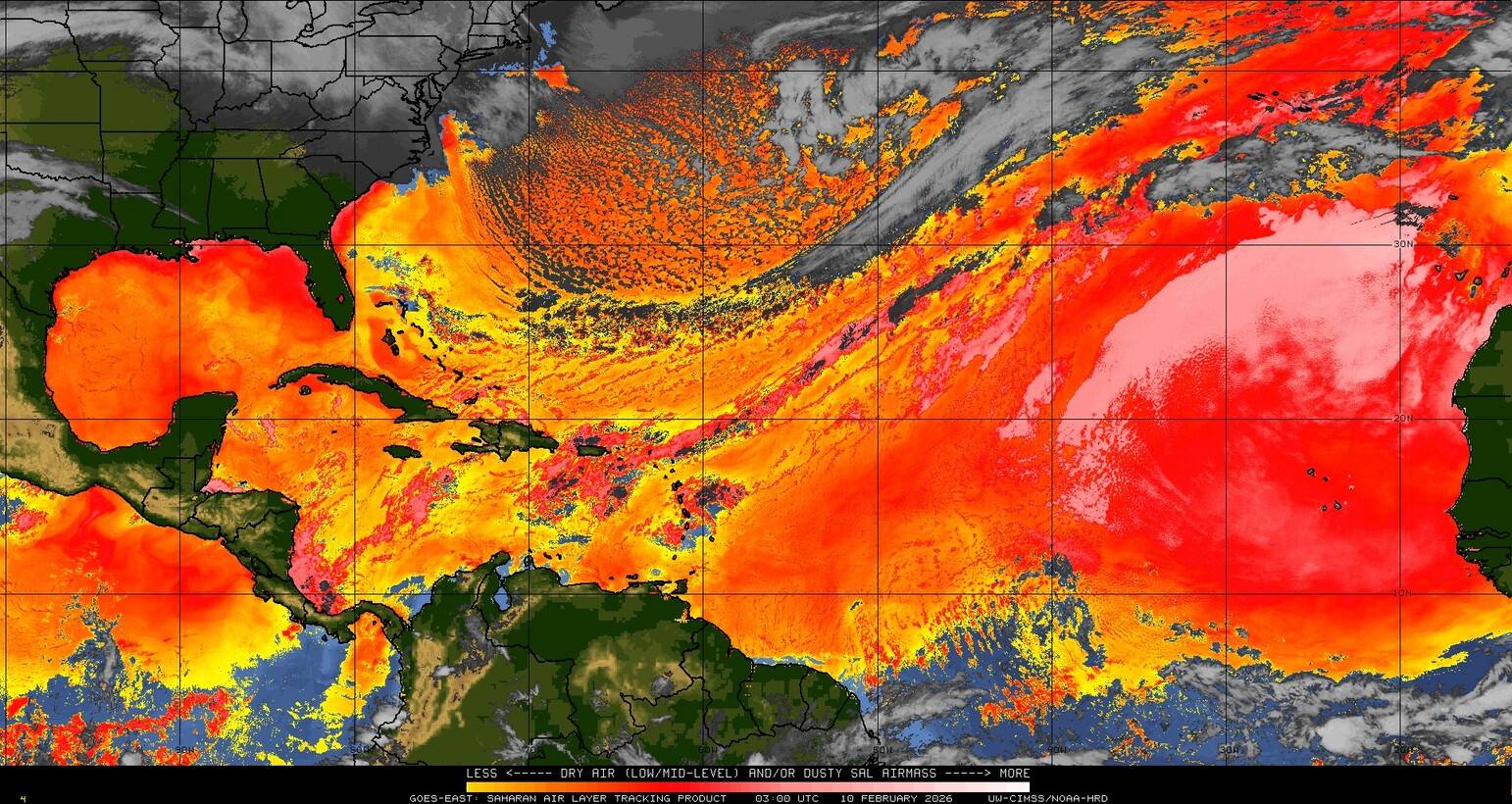 Il n’y a pas de cyclone ni de système surveillé par le NHC en Atlantique. Nous ne sommes pas actuellement en période cyclonique