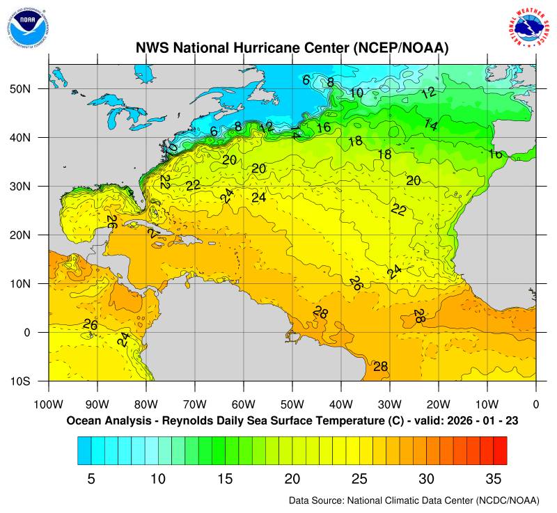 Il n’y a pas de cyclone ni de système surveillé par le NHC en Atlantique. Nous ne sommes pas actuellement en période cyclonique