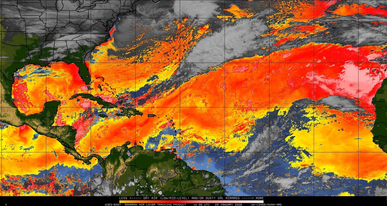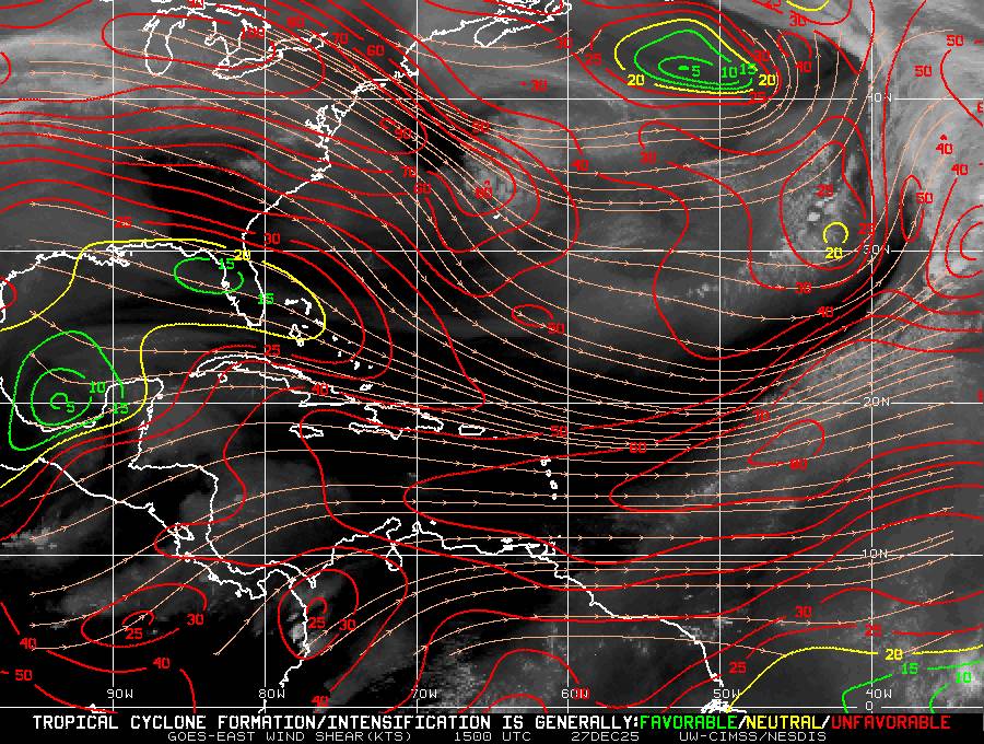Il n’y a pas de cyclone ni de système surveillé par le NHC en Atlantique. Nous ne sommes pas actuellement en période cyclonique