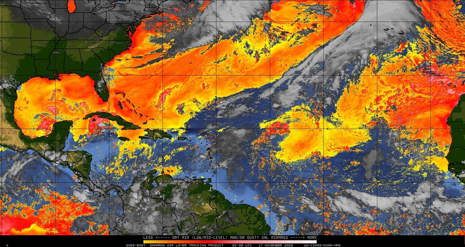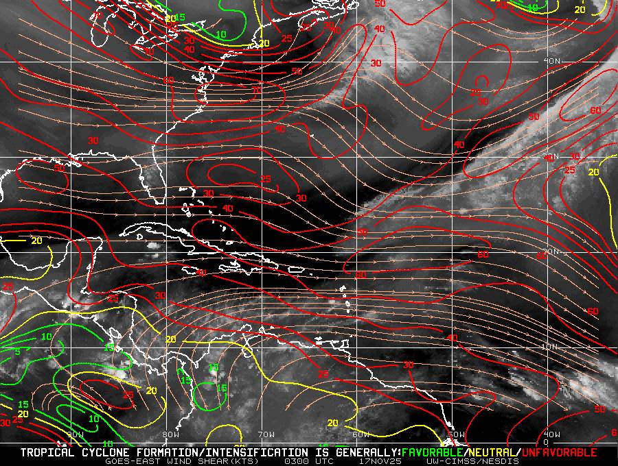 Il n’y a pas de cyclone ni de système surveillé par le NHC en Atlantique.