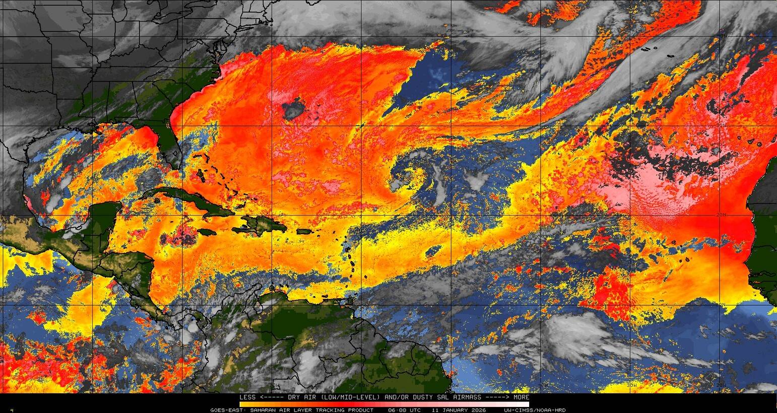 Il n’y a pas de cyclone ni de système surveillé par le NHC en Atlantique. Nous ne sommes pas actuellement en période cyclonique