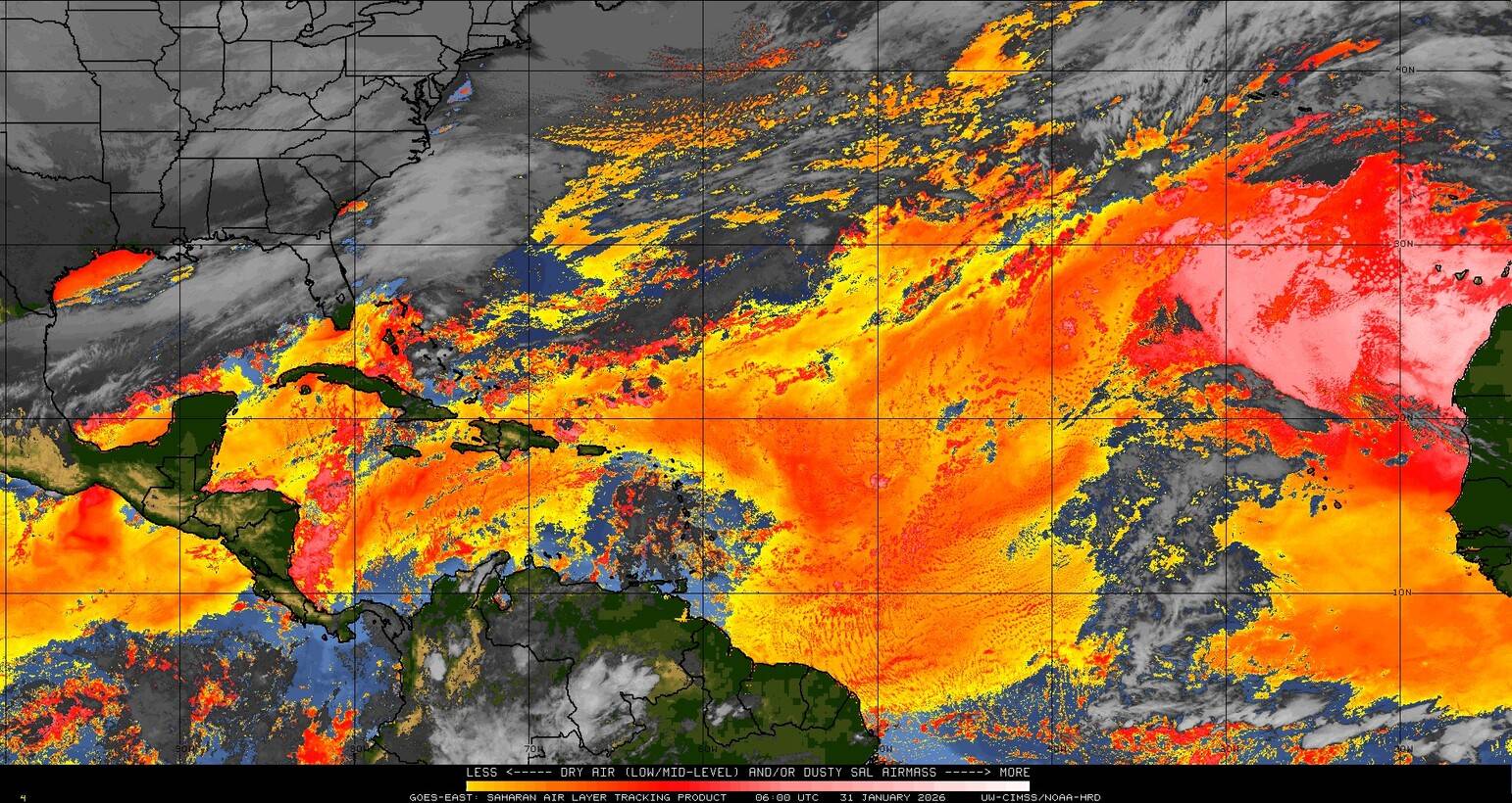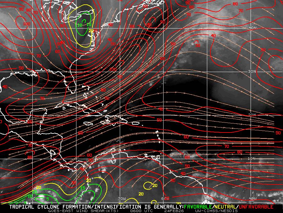 Il n’y a pas de cyclone ni de système surveillé par le NHC en Atlantique. Nous ne sommes pas actuellement en période cyclonique