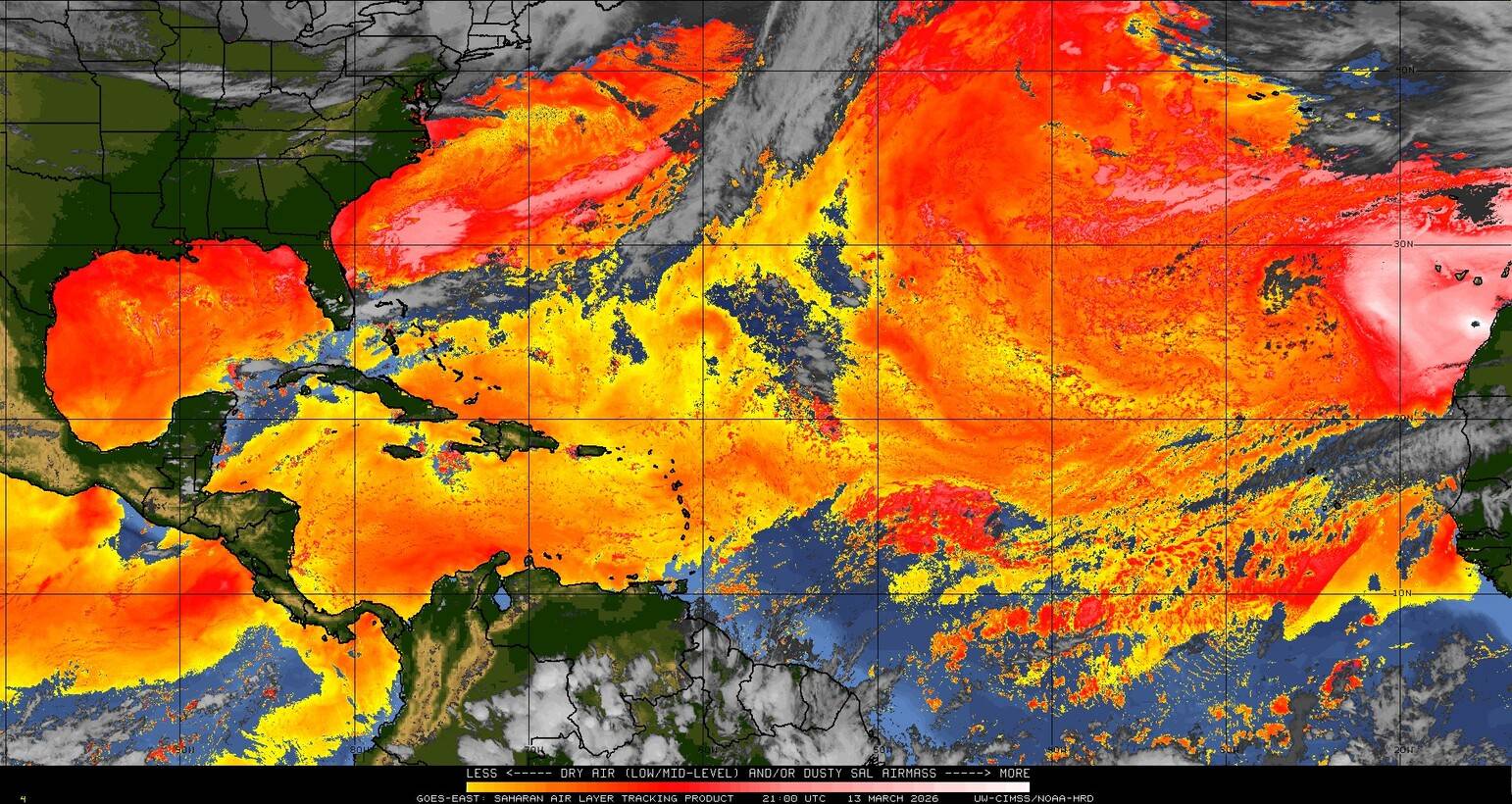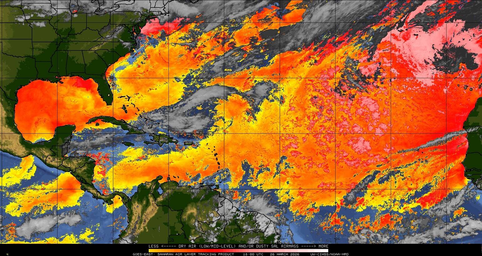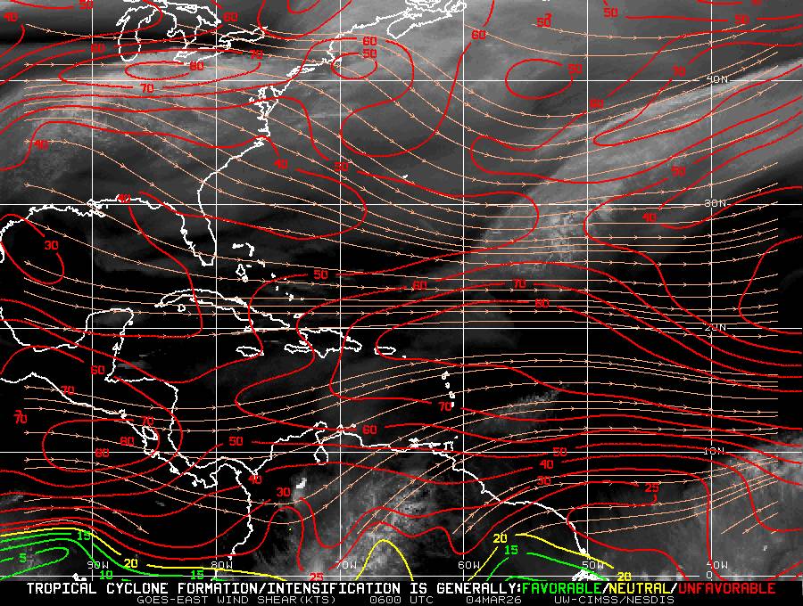 Il n’y a pas de cyclone ni de système surveillé par le NHC en Atlantique. Nous ne sommes pas actuellement en période cyclonique
