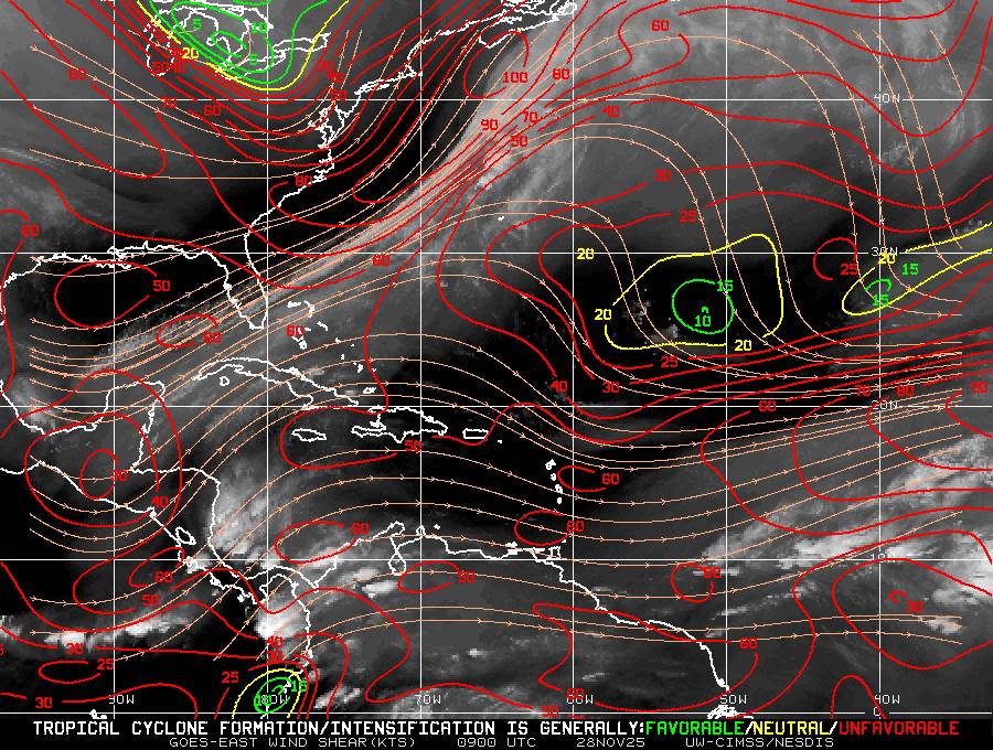 Il n’y a pas de cyclone ni de système surveillé par le NHC en Atlantique.