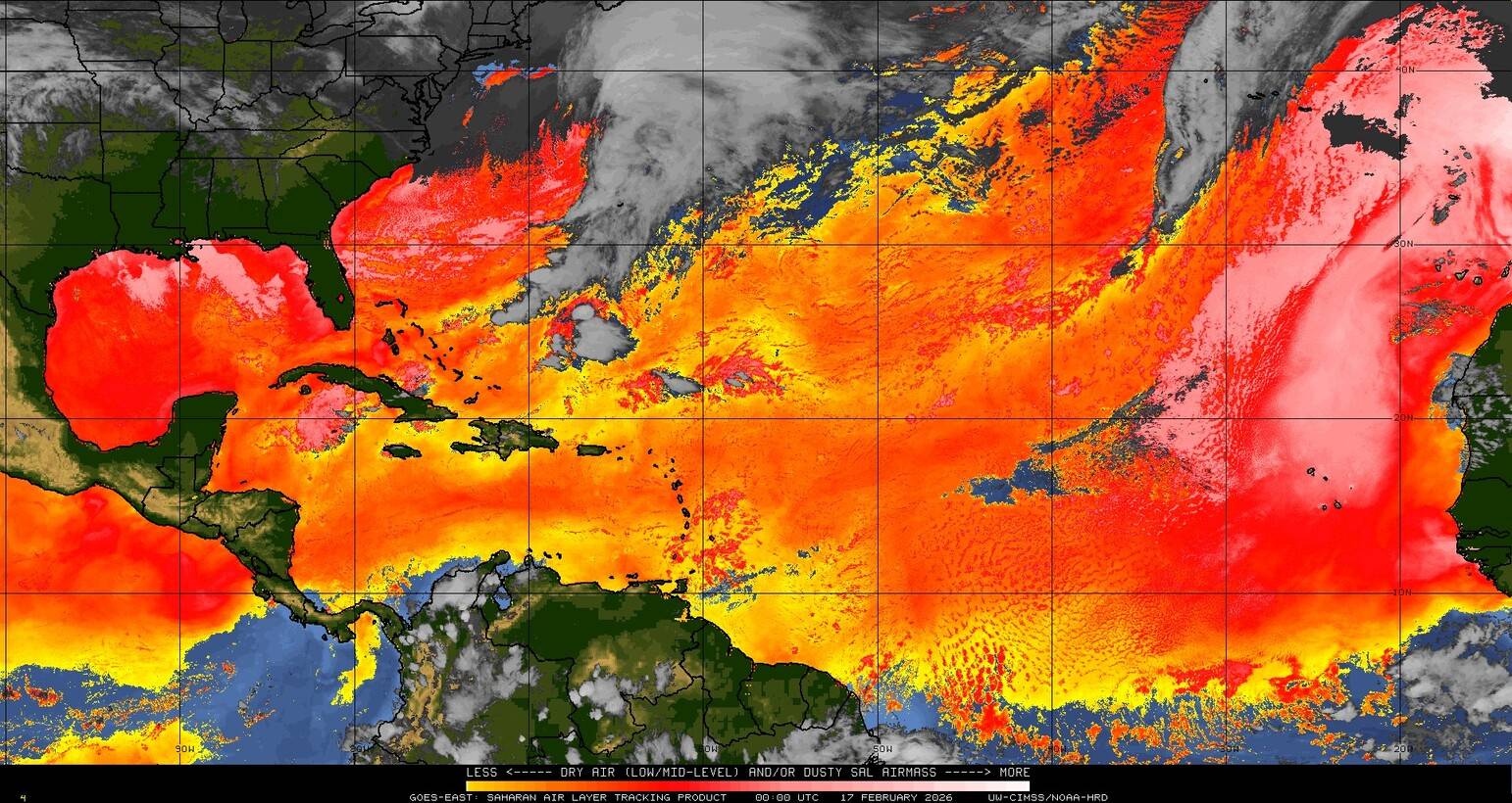 Il n’y a pas de cyclone ni de système surveillé par le NHC en Atlantique. Nous ne sommes pas actuellement en période cyclonique