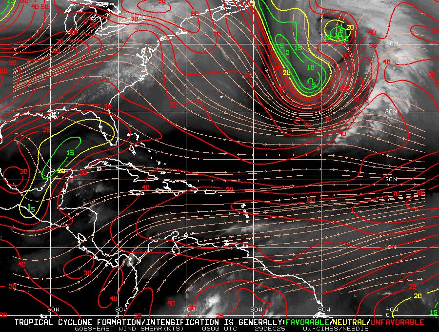 Il n’y a pas de cyclone ni de système surveillé par le NHC en Atlantique. Nous ne sommes pas actuellement en période cyclonique