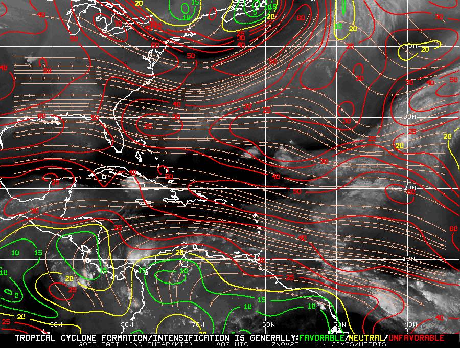 Il n’y a pas de cyclone ni de système surveillé par le NHC en Atlantique.