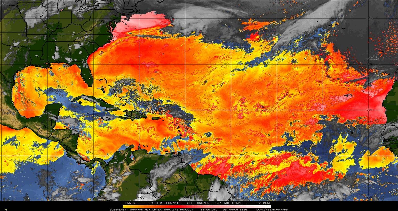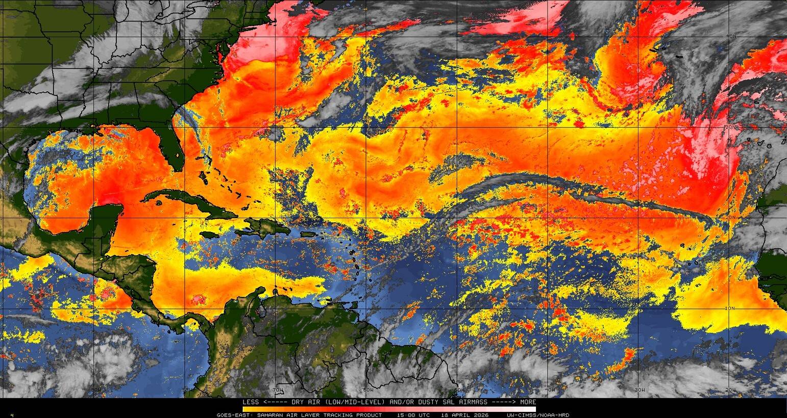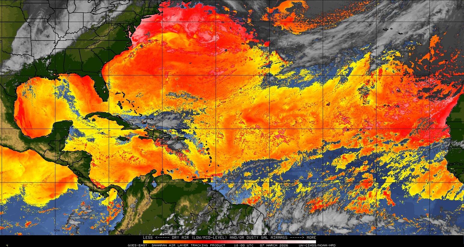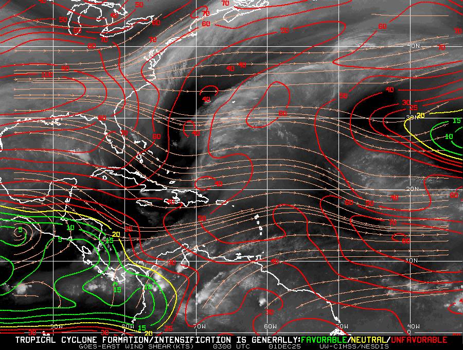 Il n’y a pas de cyclone ni de système surveillé par le NHC en Atlantique. Nous ne sommes pas actuellement en période cyclonique