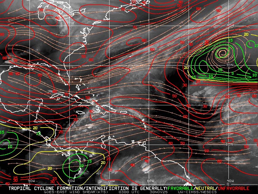 Il n’y a pas de cyclone ni de système surveillé par le NHC en Atlantique.