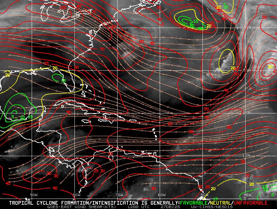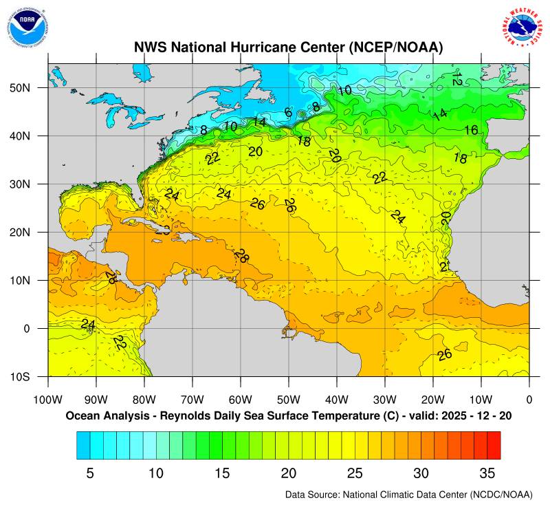 Il n’y a pas de cyclone ni de système surveillé par le NHC en Atlantique. Nous ne sommes pas actuellement en période cyclonique