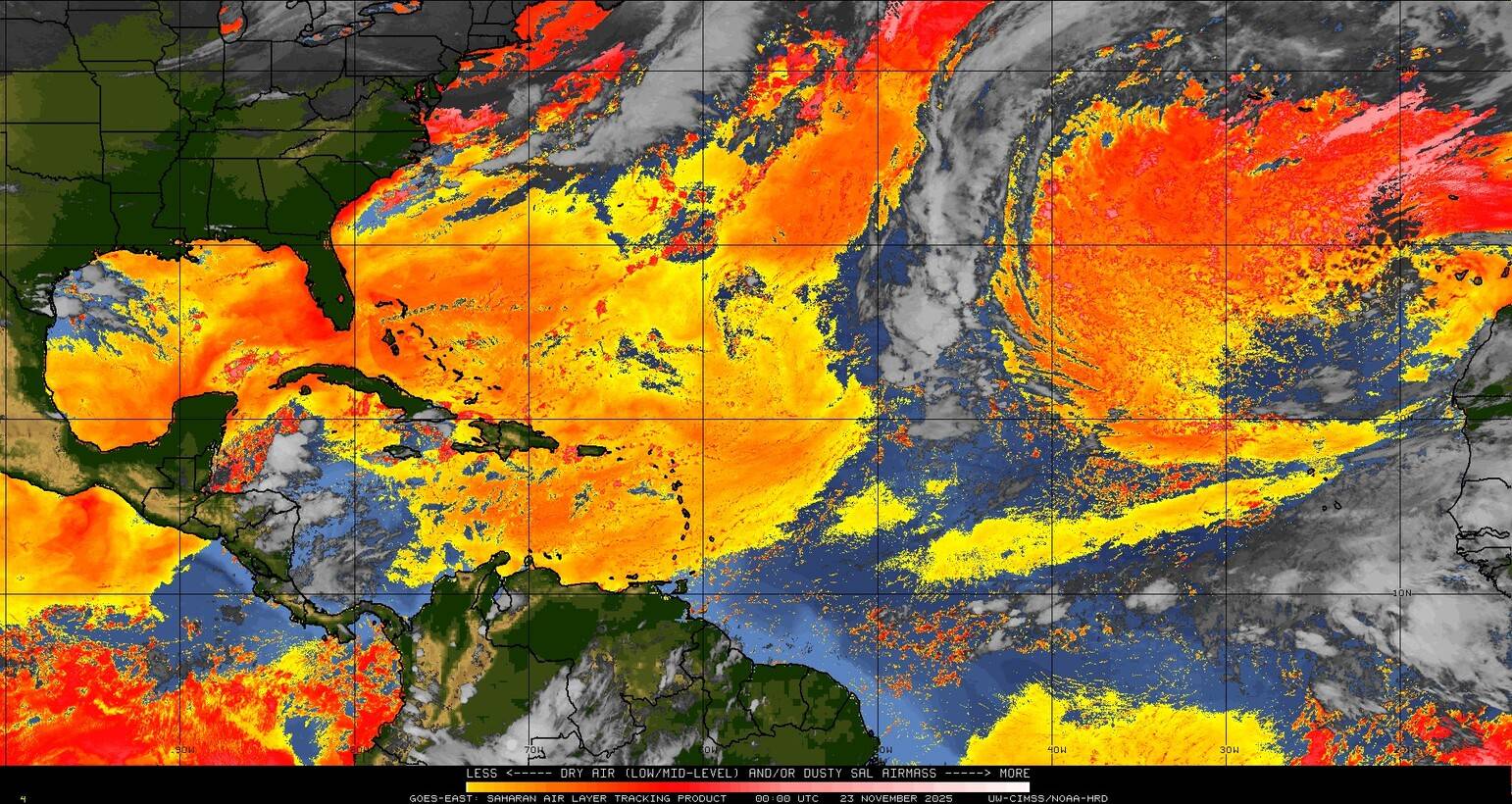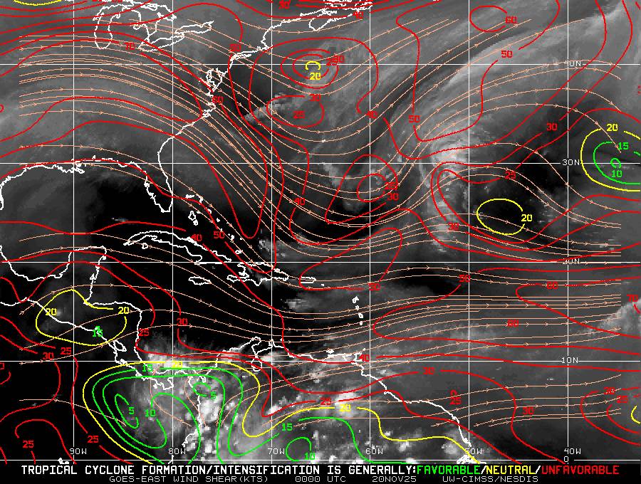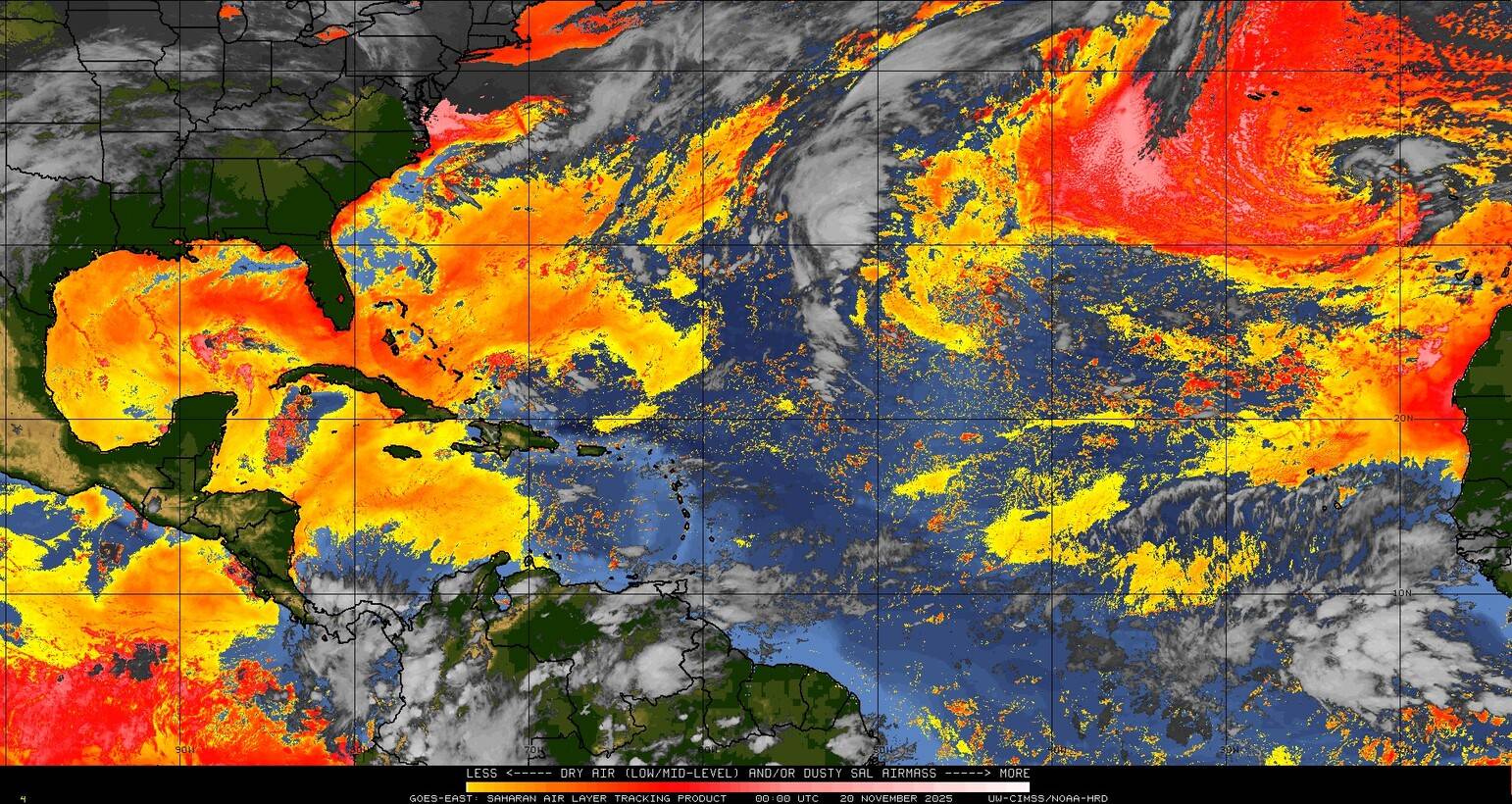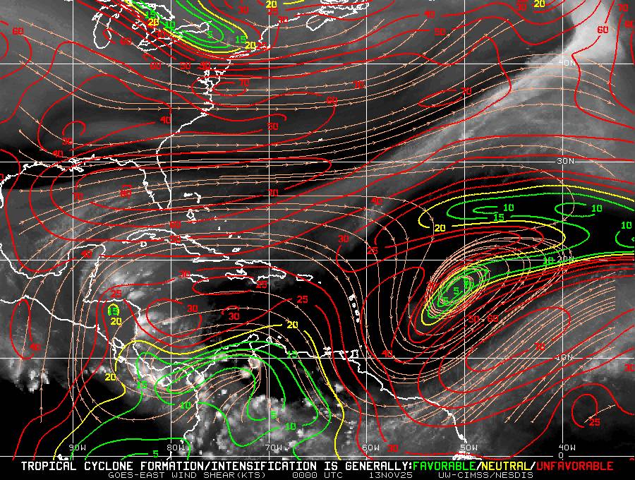 Il n’y a pas de cyclone ni de système surveillé par le NHC en Atlantique.