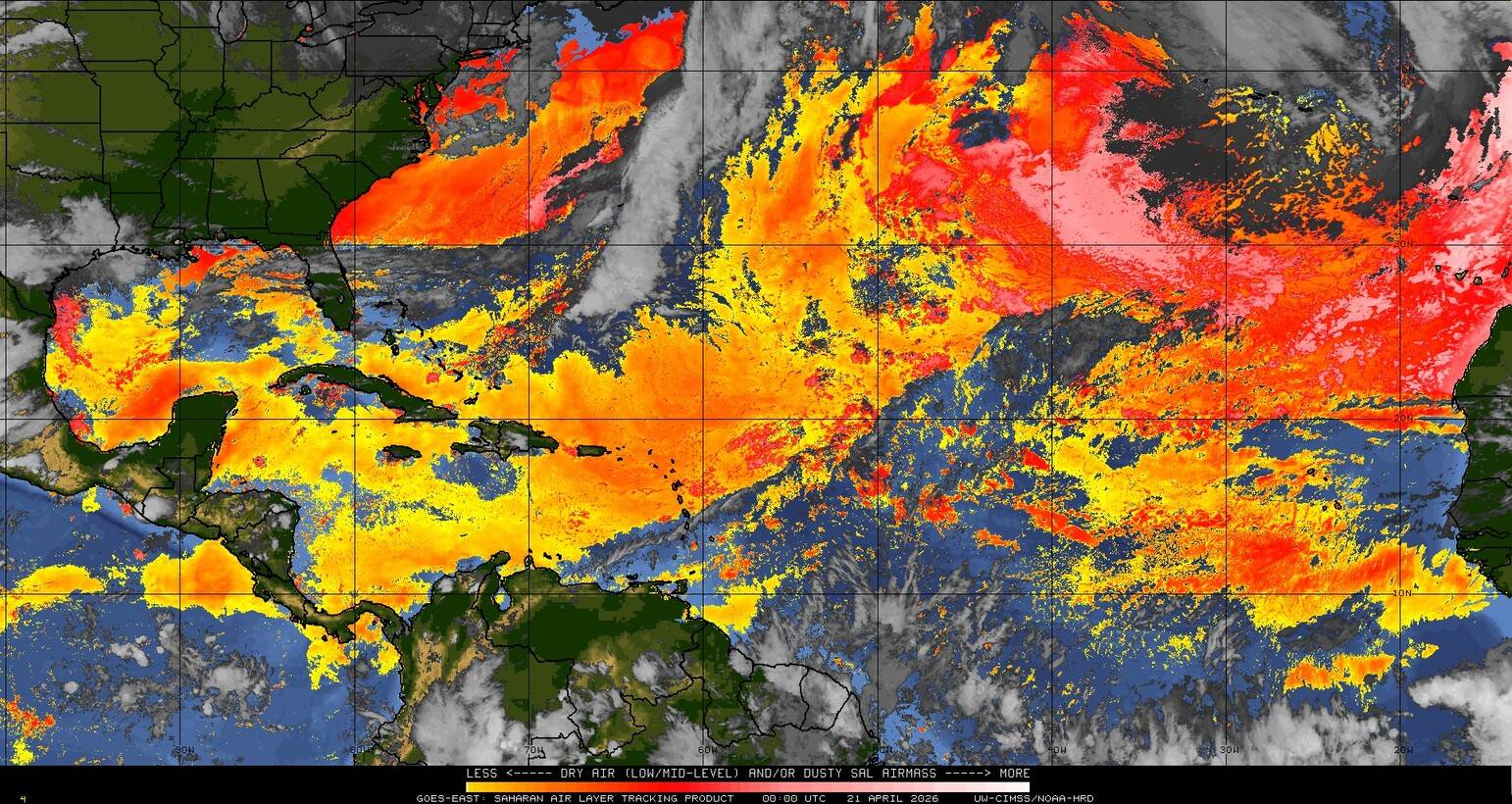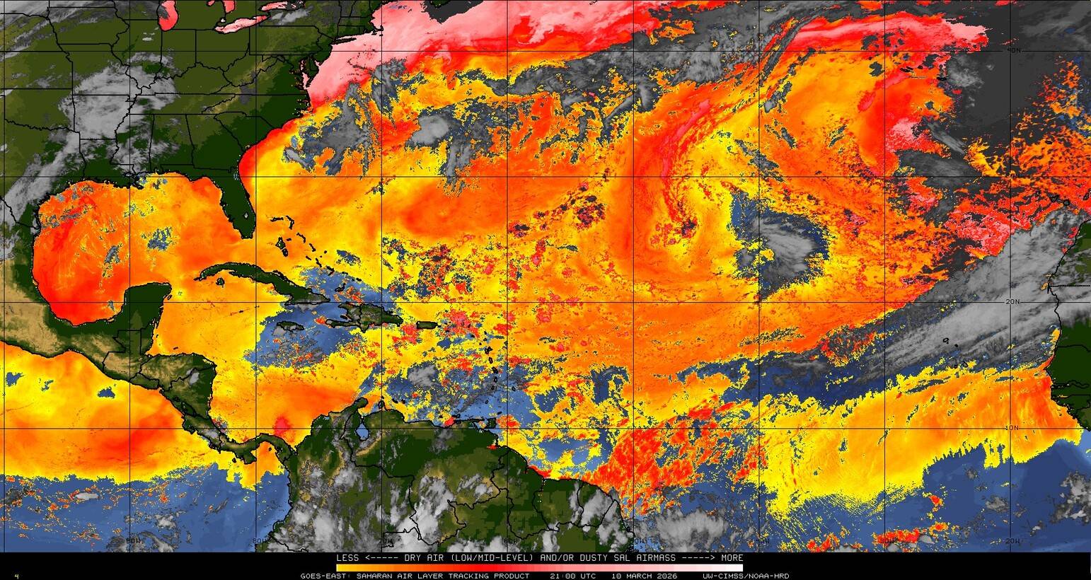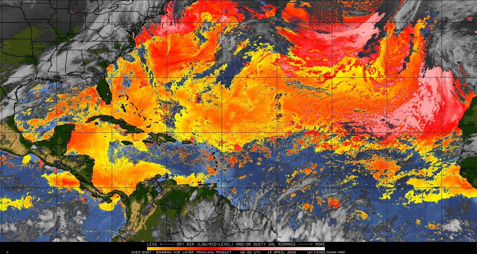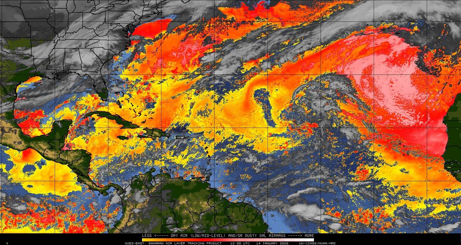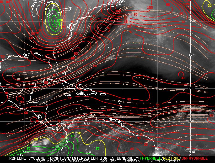 Il n’y a pas de cyclone ni de système surveillé par le NHC en Atlantique. Nous ne sommes pas actuellement en période cyclonique
