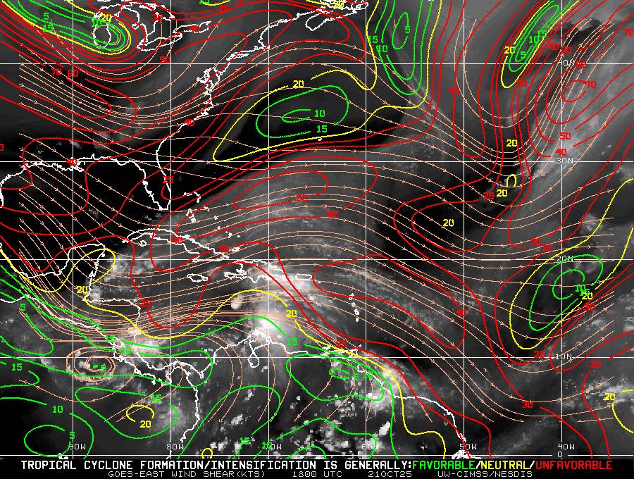 L’ INVEST 98L (1) situé(e) sur 14 N par -69.8 W (à 230 km au NNW de Aruba, Bonaire, Curacao). L’intensité est de 40 kts et la pression de 1004 hPa. Le risque de renforcement est de 100% à 48H et de 100% à 7 jours.