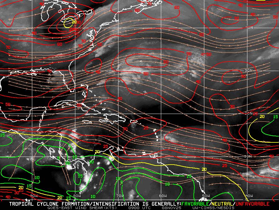 Il n’y a pas de cyclone ni de système surveillé par le NHC en Atlantique.