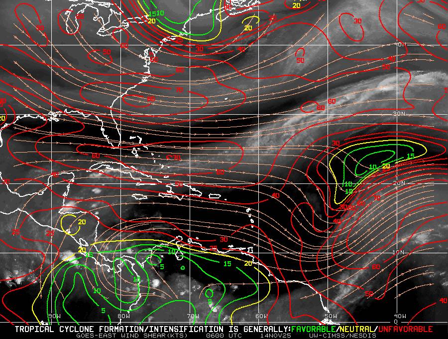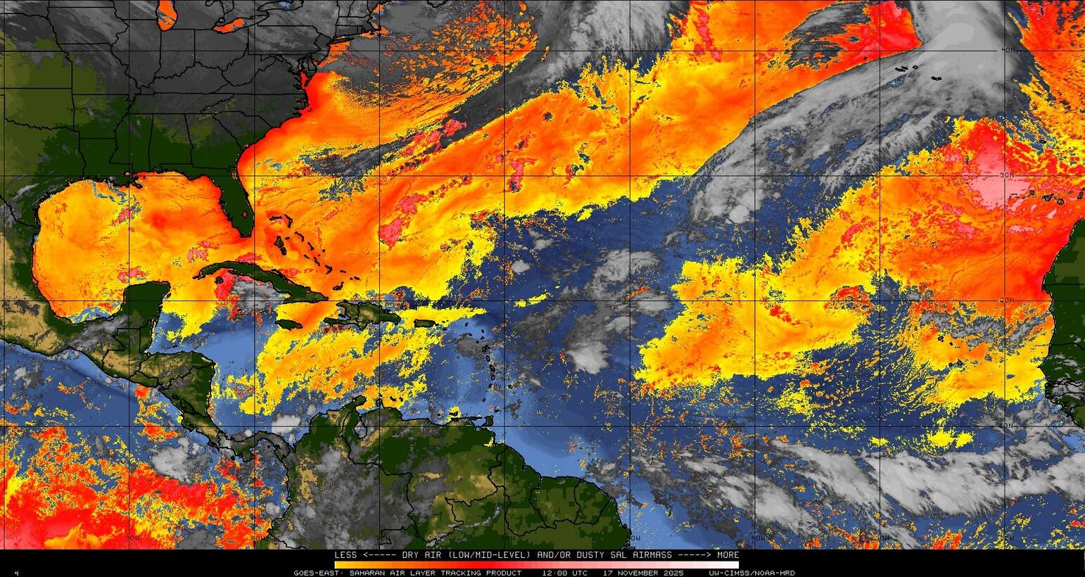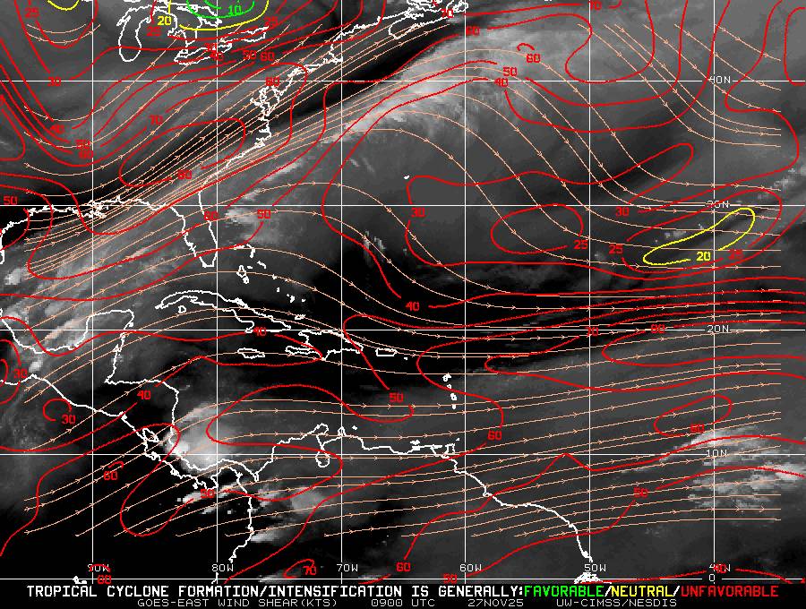 Il n’y a pas de cyclone ni de système surveillé par le NHC en Atlantique.