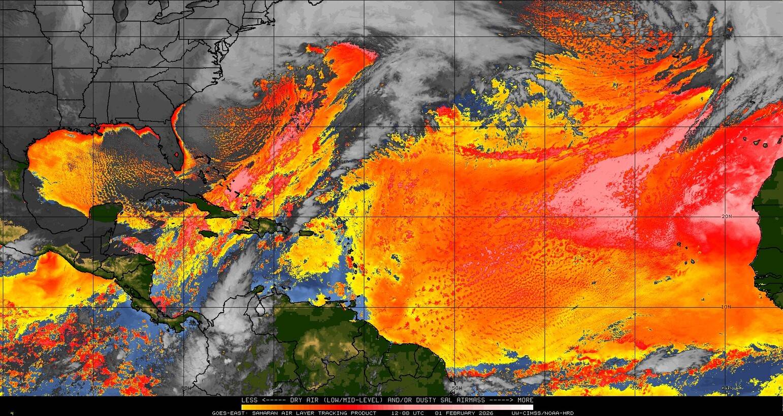 Il n’y a pas de cyclone ni de système surveillé par le NHC en Atlantique. Nous ne sommes pas actuellement en période cyclonique