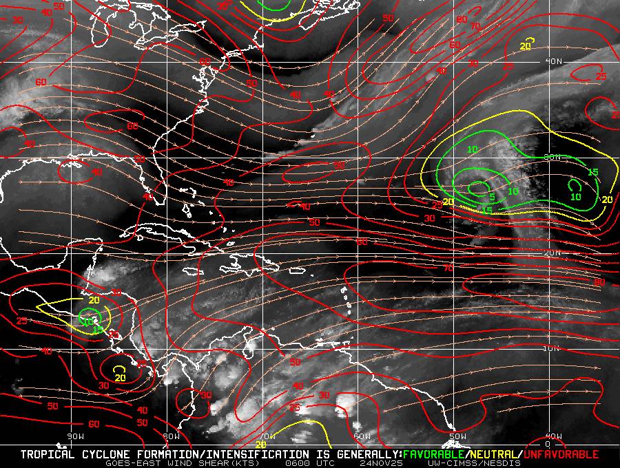 Il n’y a pas de cyclone ni de système surveillé par le NHC en Atlantique.