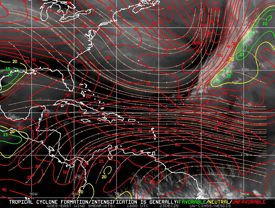 Il n’y a pas de cyclone ni de système surveillé par le NHC en Atlantique. Nous ne sommes pas actuellement en période cyclonique
