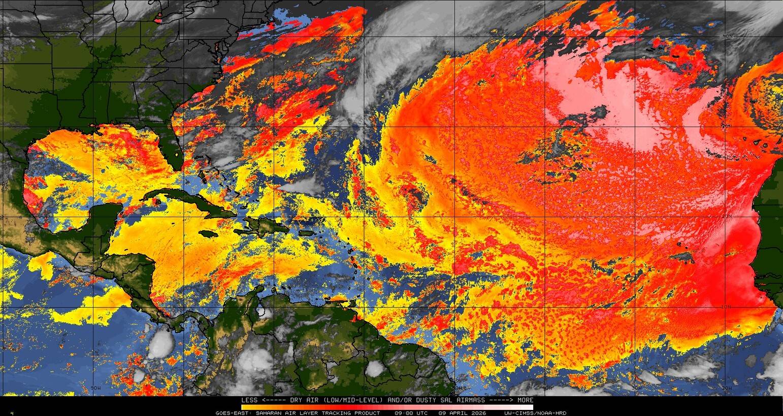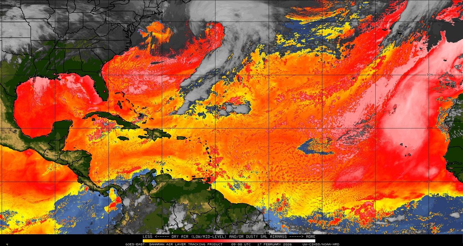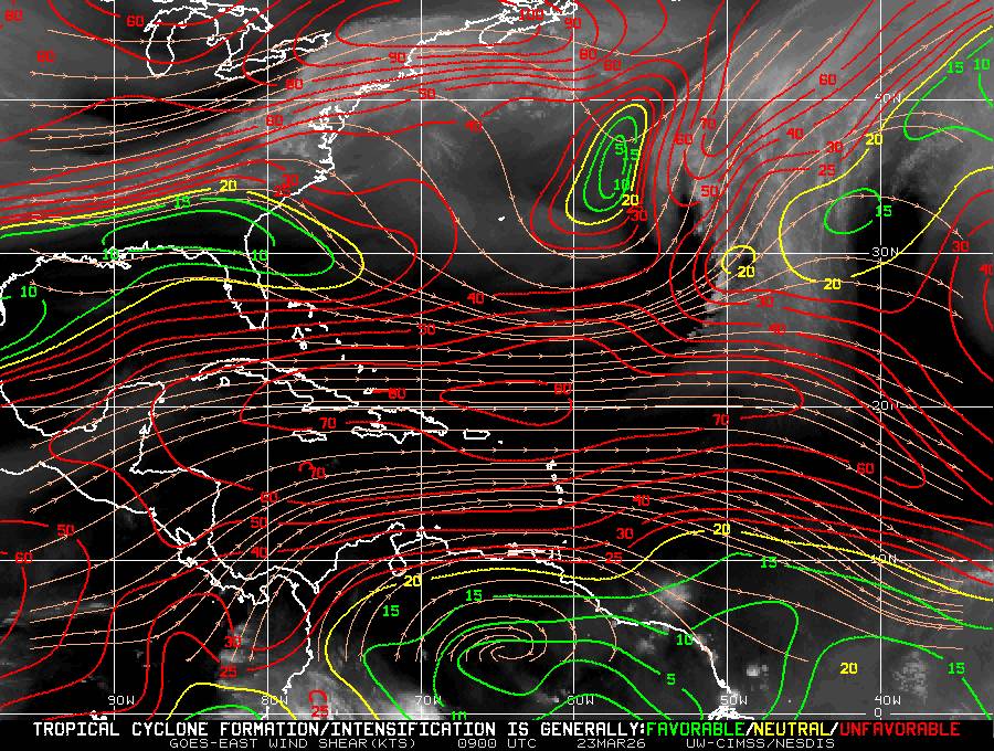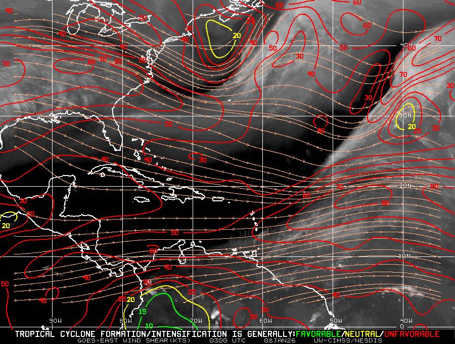 Il n’y a pas de cyclone ni de système surveillé par le NHC en Atlantique. Nous ne sommes pas actuellement en période cyclonique