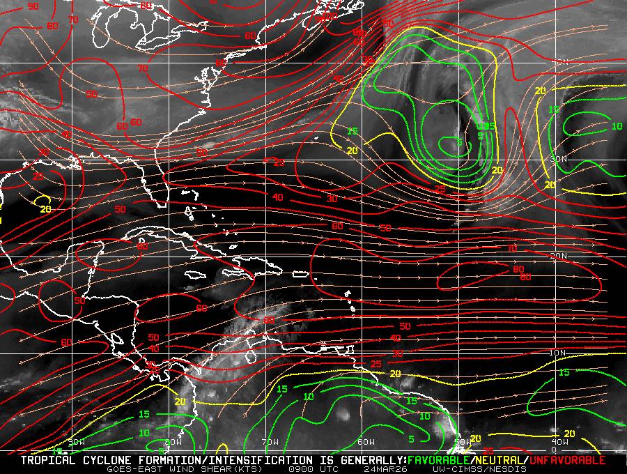 Il n’y a pas de cyclone ni de système surveillé par le NHC en Atlantique. Nous ne sommes pas actuellement en période cyclonique